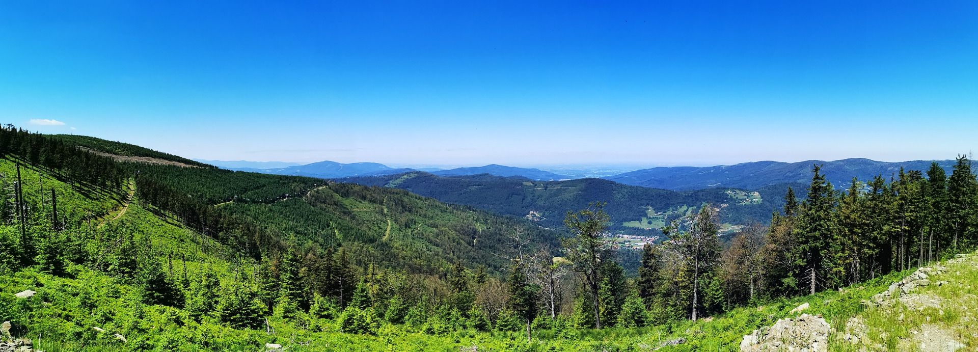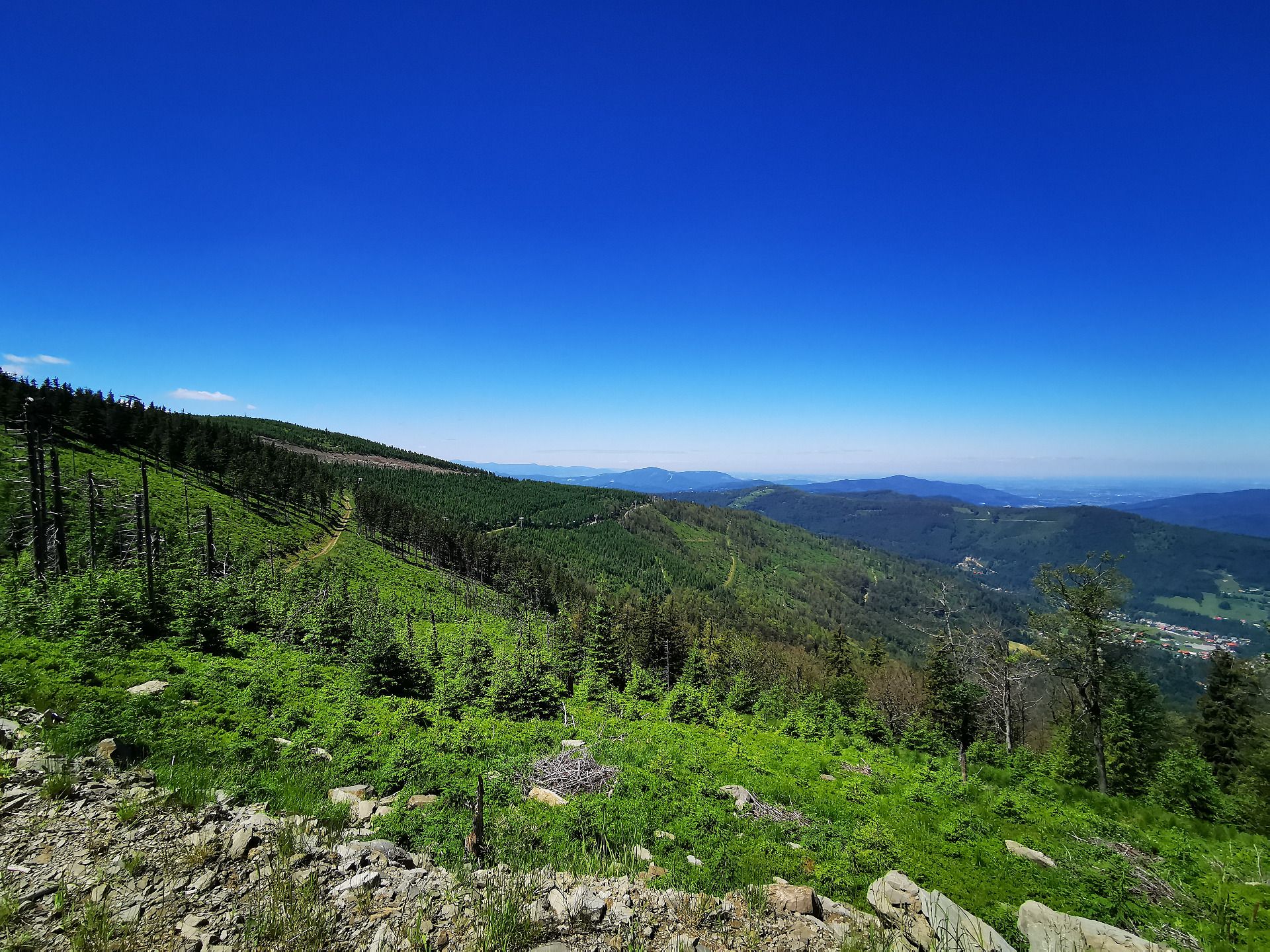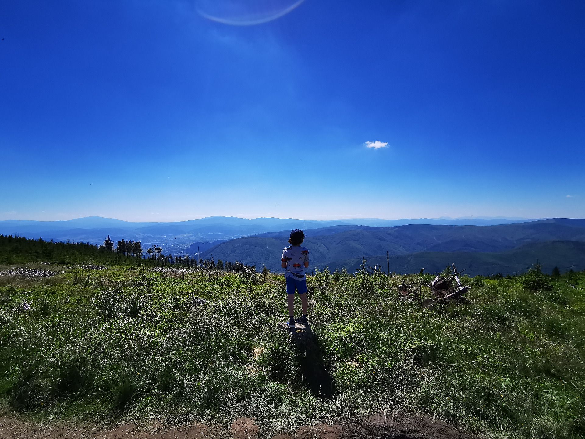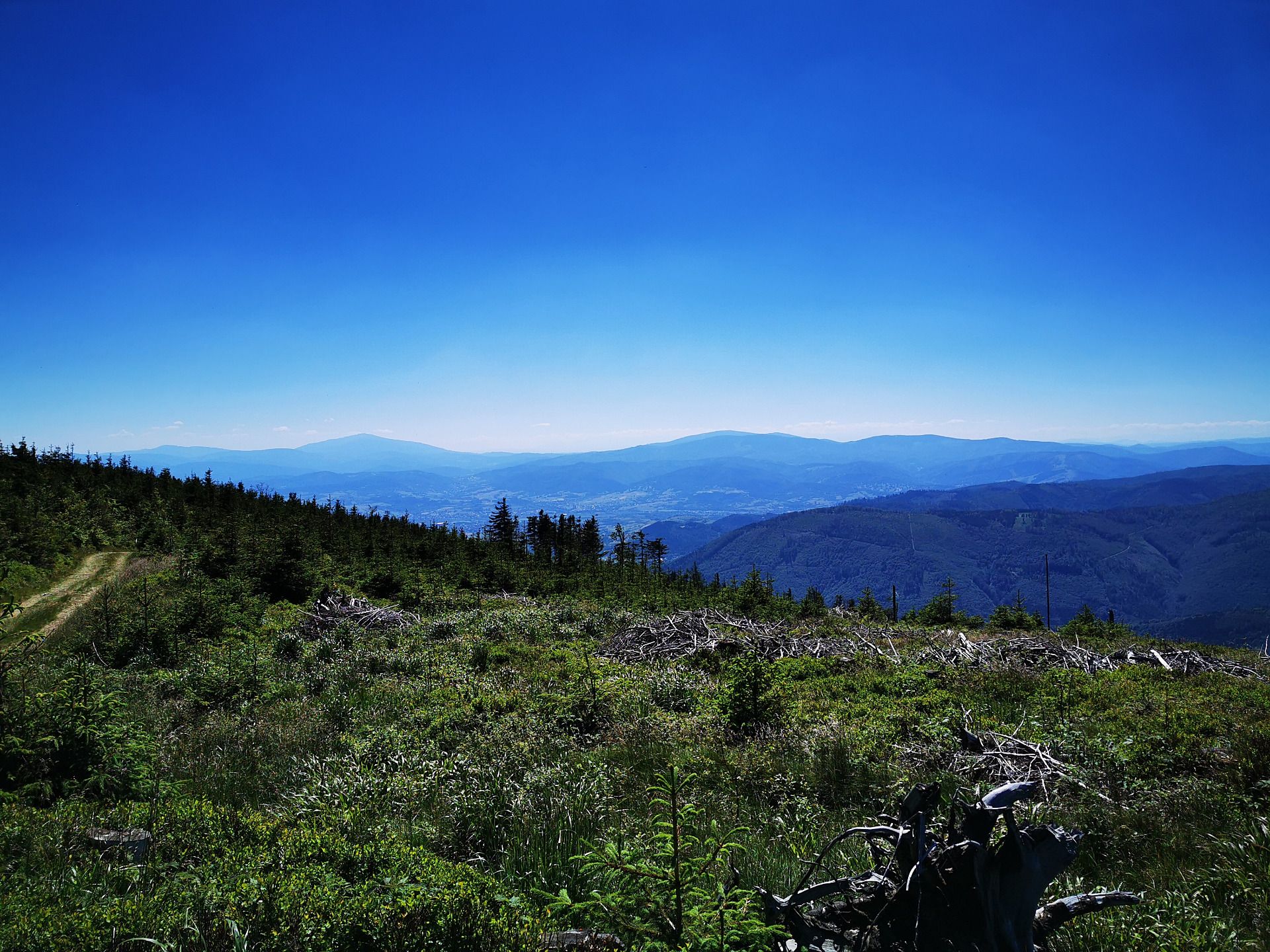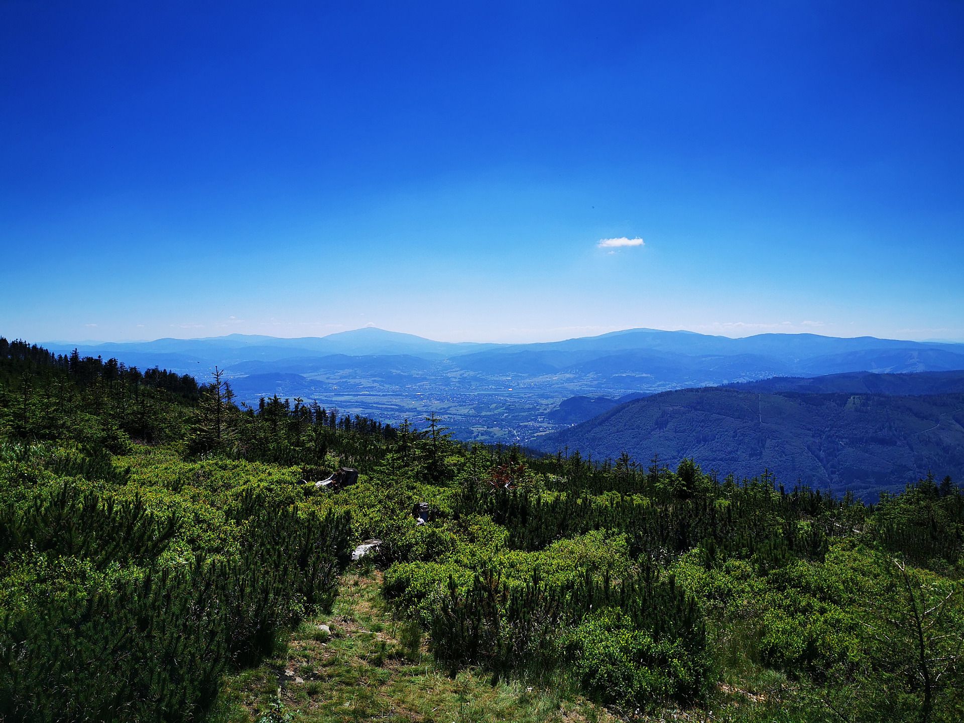 Ruszamy szlakiem zielonym w kierunku Zbójnickiej Kopy. Patrząc w kierunku południowym możemy podziwiać piękne beskidzkie panoramy.