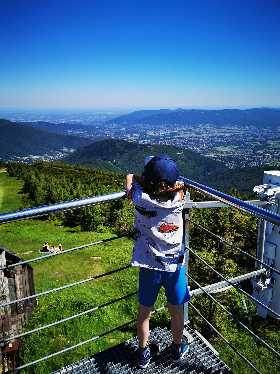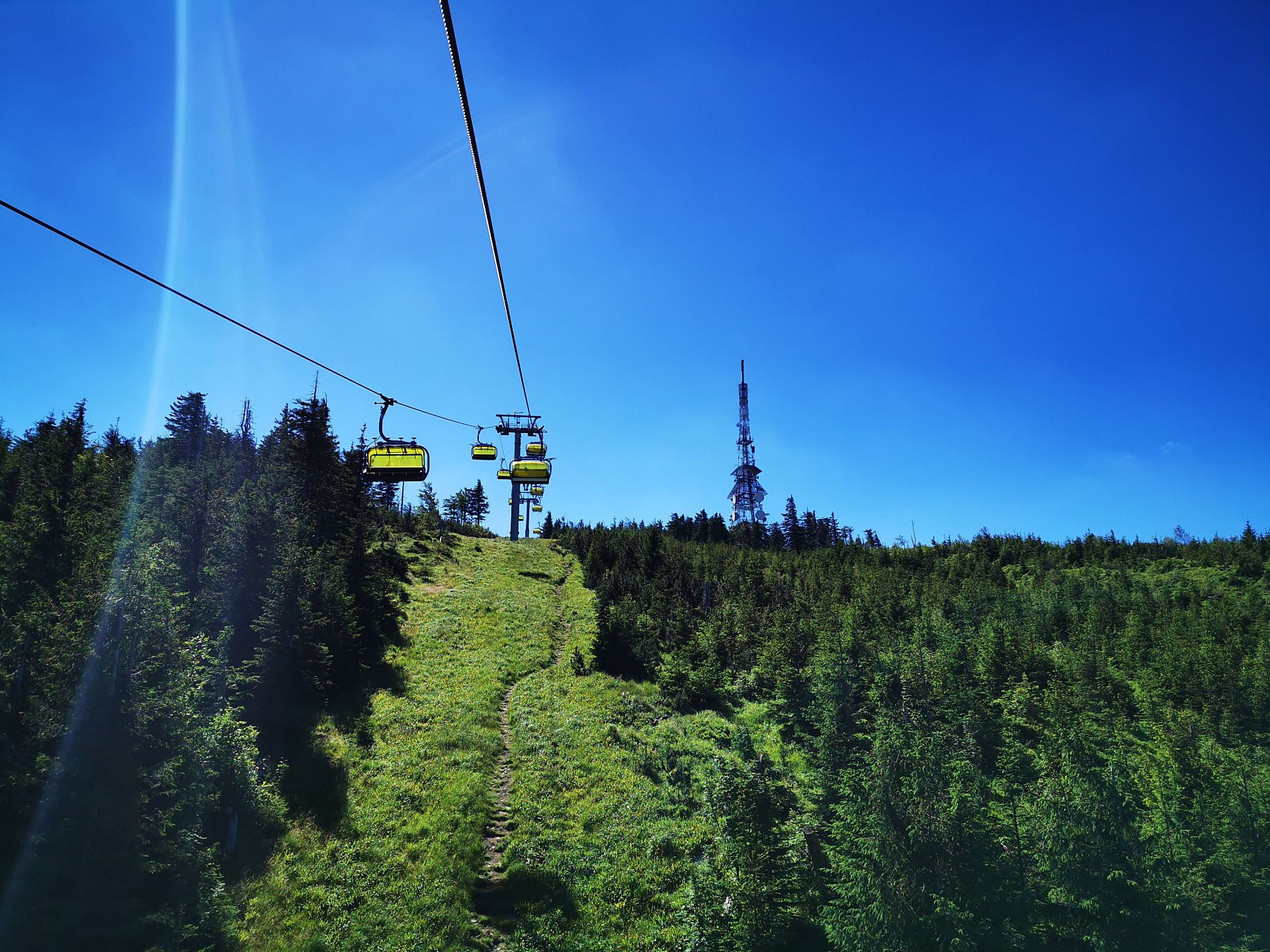 30 stopni ciepła nie pomaga we wspinaczce, więc tym razem wybraliśmy opcję "komfort" - jedziemy na szczyt Skrzycznego kolejką.