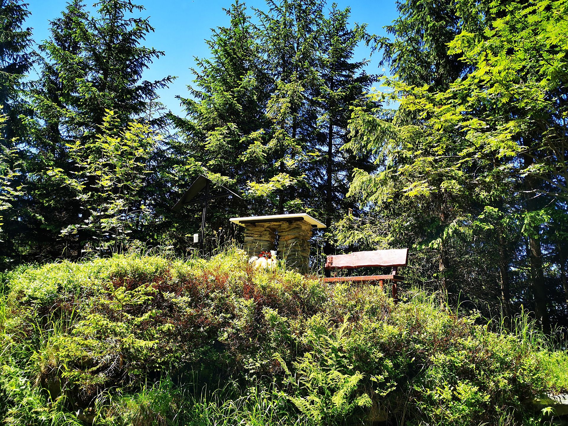 Gdy dotarliśmy do trasy niebieskiej, zwanej Ondraszkiem, naszym oczom ukazał się ołtarz wraz z Krzyżem Wdzięczności.
