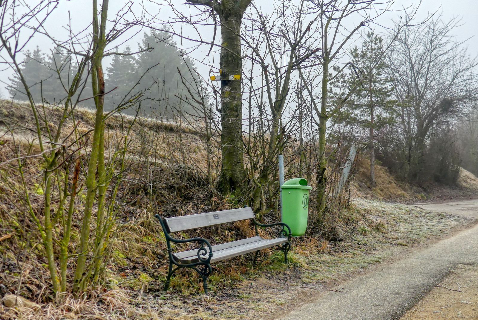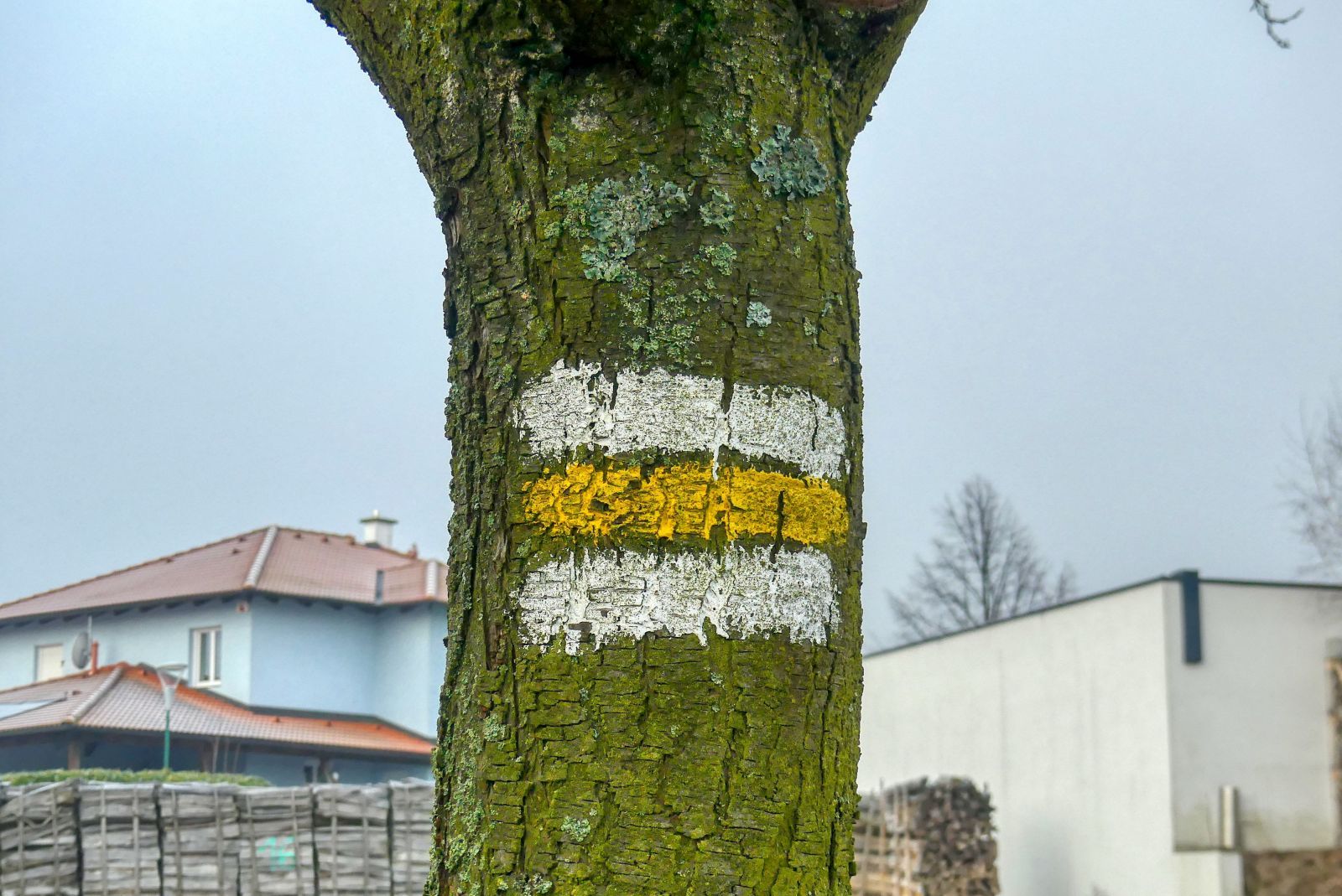 The hiking trail D5 is indicated by white-yellow-white stripes on trees, bridges or lamps.
