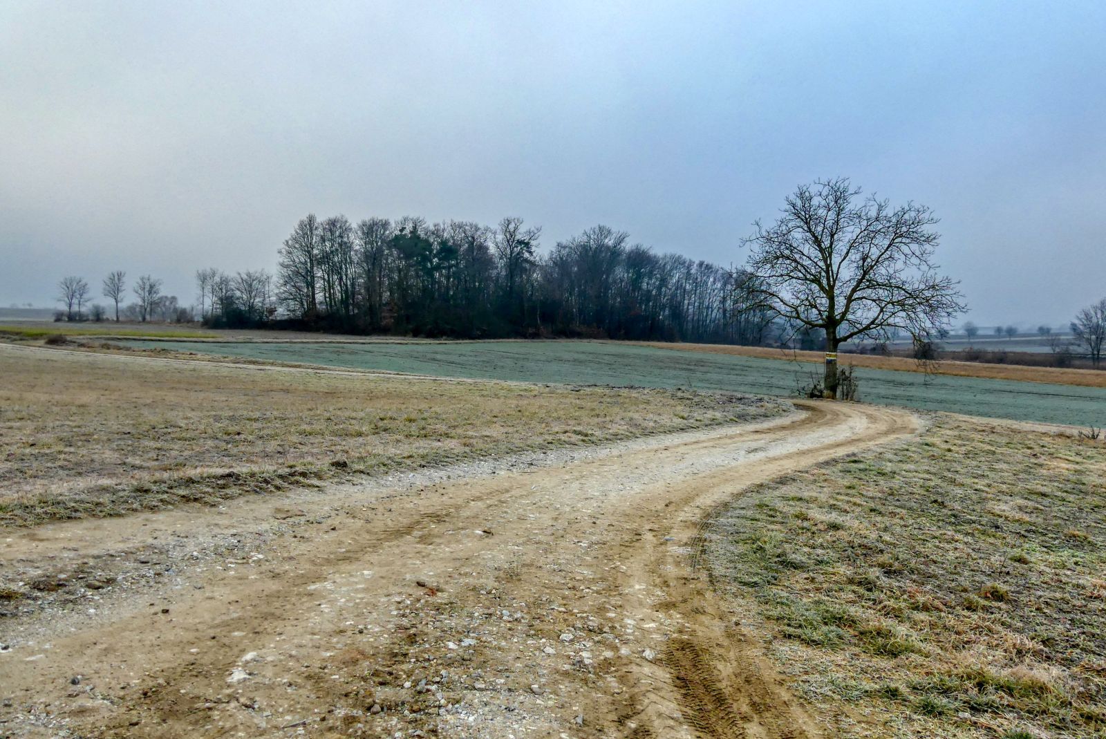 Follow this way for approximately 150 meters. After this tree line you have to turn right.