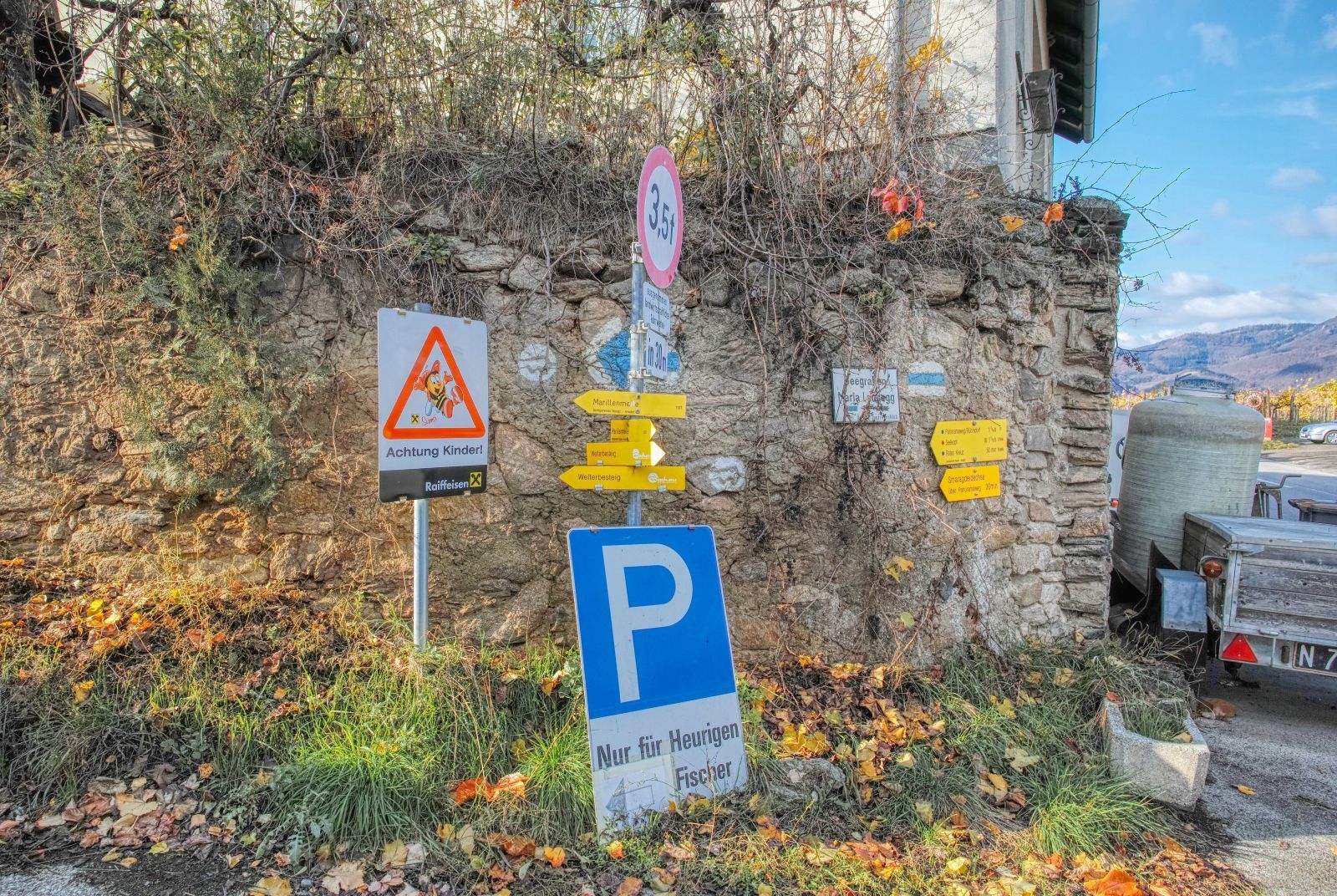 The hike starts in Rossatzbach at the winery and Heurigen of the family Rehrl-Fischer.