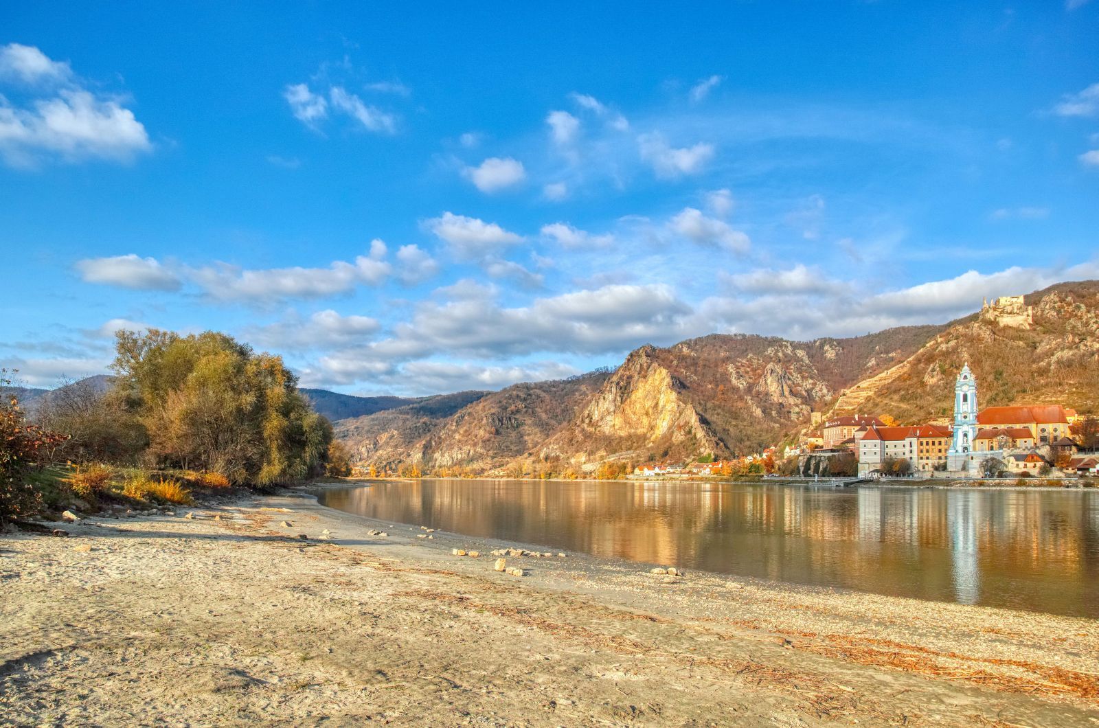 After about one more kilometers you reach the beach of Rossatzbach - one of the few sandy beaches in this area. From here you have again a wonderful view of Dürnstein.