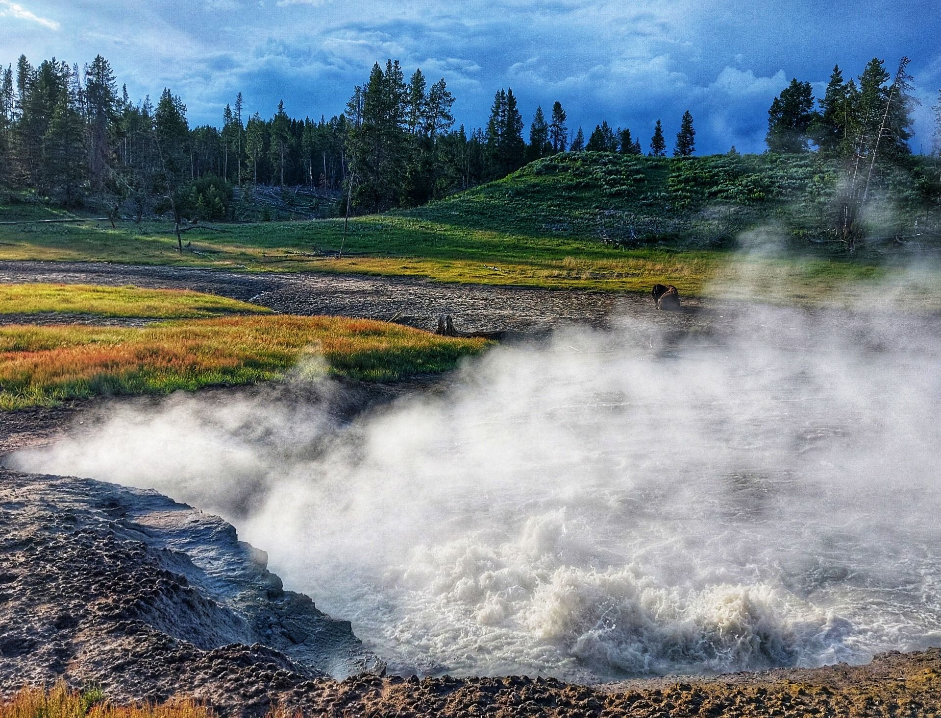 Der Park liegt auf einem gigantischen Supervulkan mit einer aktiven Magmakammer, die für die beeindruckenden geothermischen Aktivitäten sorgt, die man hier überall sehen und riechen kann.
