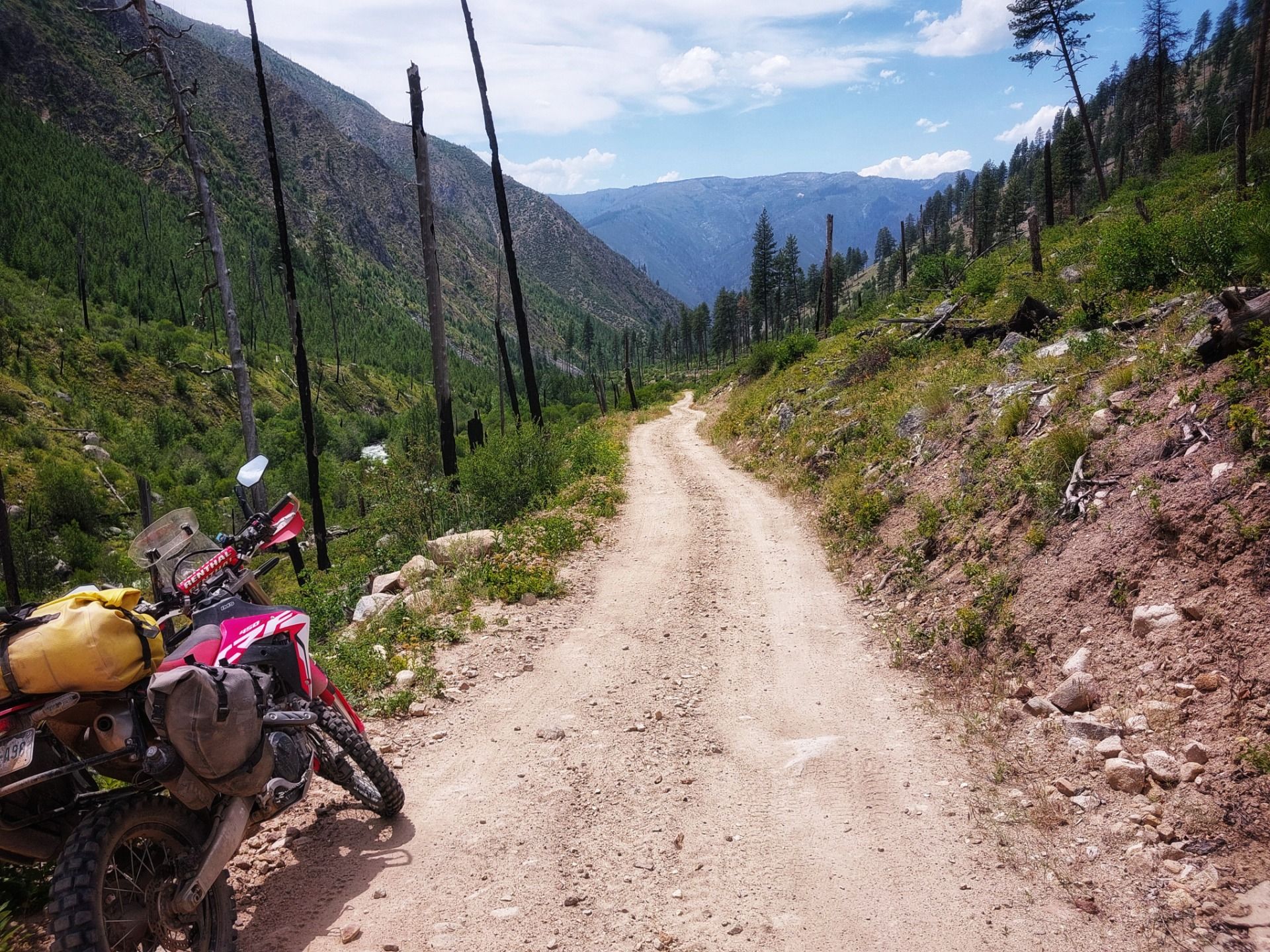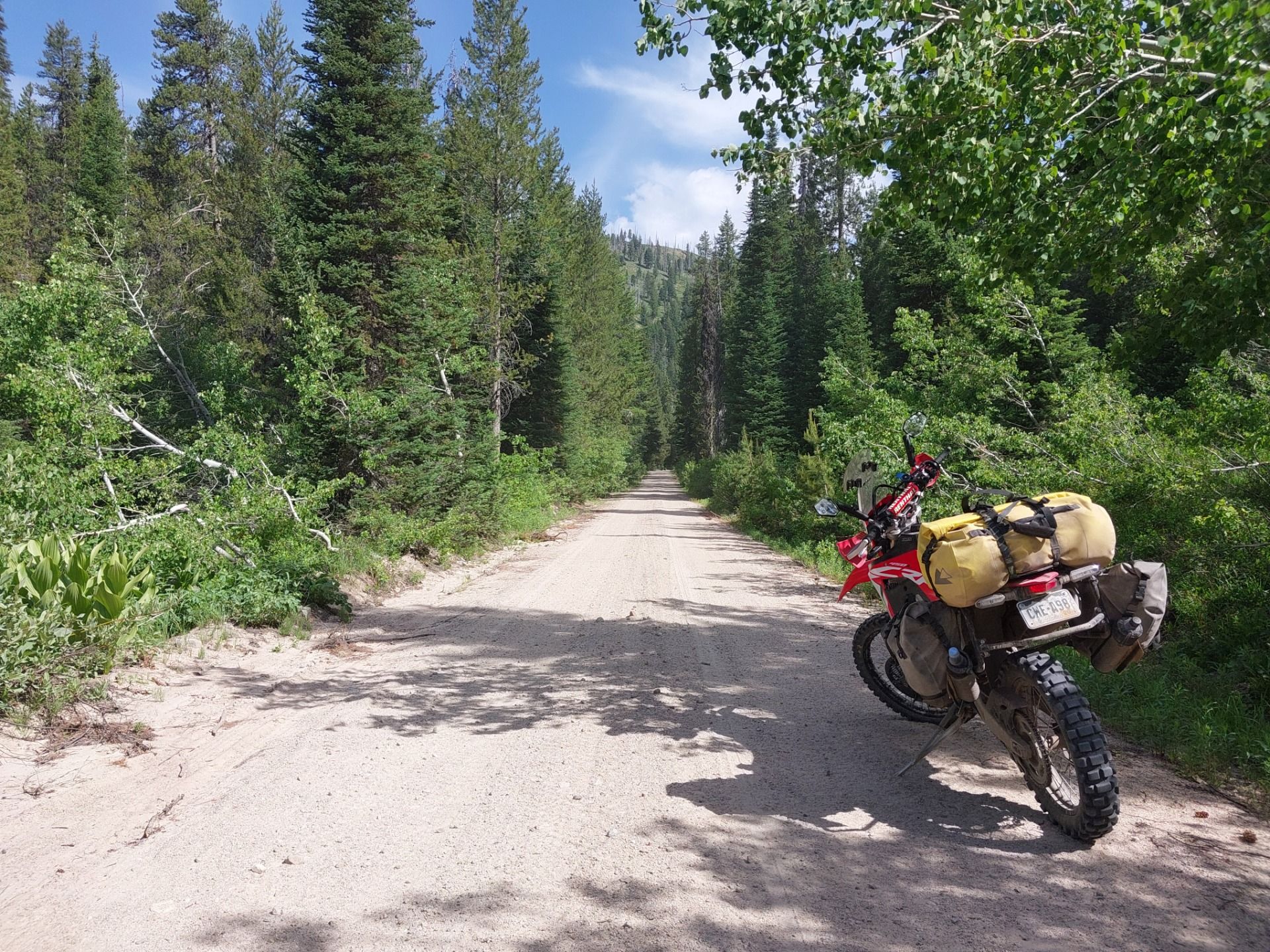 Also Augen zu und zurück in die Traumwelt. Um 6 Uhr krähte mein imaginärer Hahn. Die Luft war noch frisch, die Welt roch nach Kiefernnadeln und feuchter Erde, während ich zum gefühlten 1000. Mal mein Porridge zubereitete, Zähne putzte, Zelt abbaute und alles aufs Bike packte.
