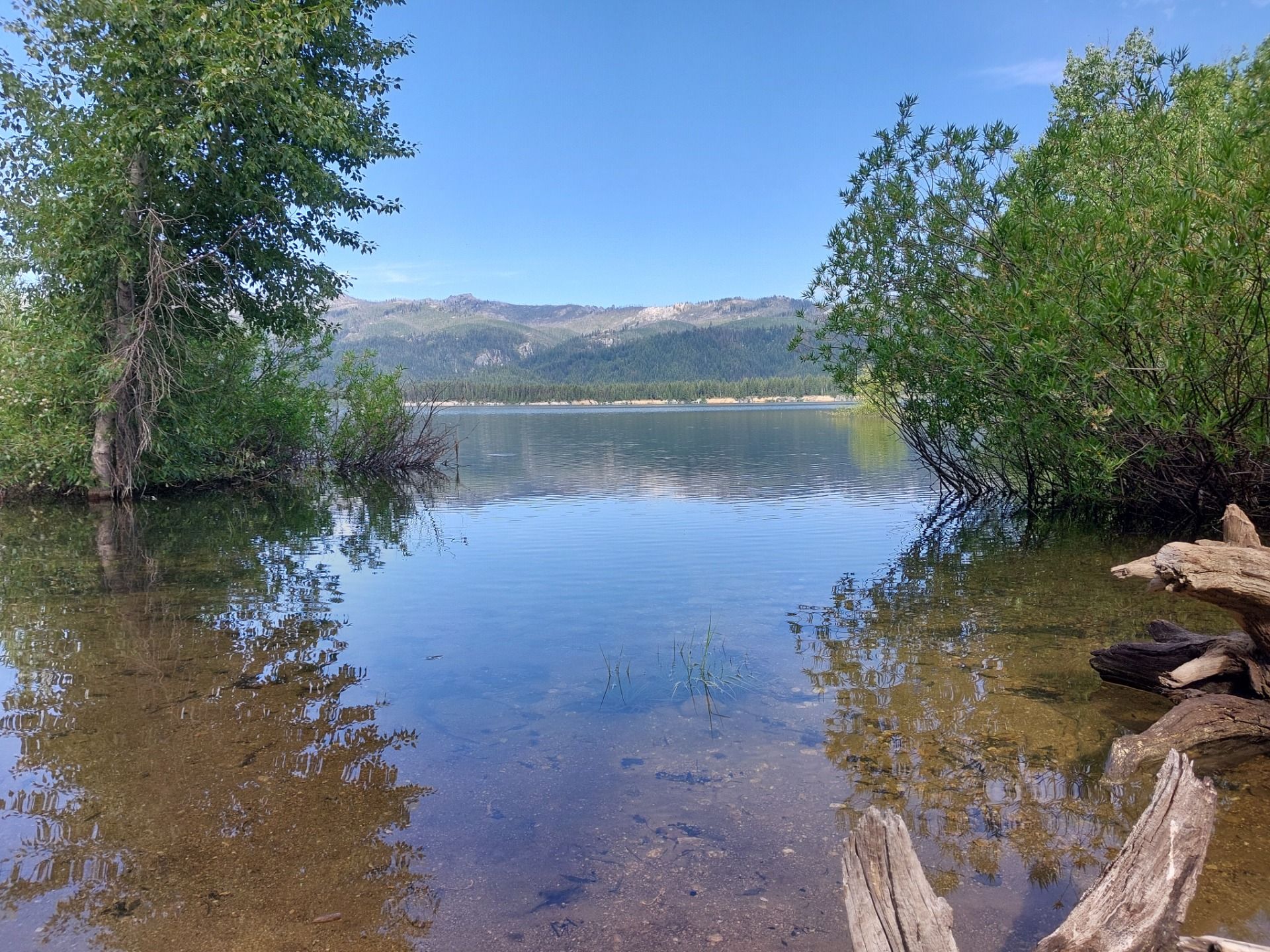 Am Deadwood Reservoir machte ich Pause, Beine vertreten, Wasser gluckern hören. Die Gegend hier ist wie ein Landschaftspuzzle in Pastell: tiefgrüne Tannen, spiegelndes Wasser, steile Berghänge im Hintergrund, Adler ziehen über den Himmel, während das Wasser leise gegen das Ufer schwappt.