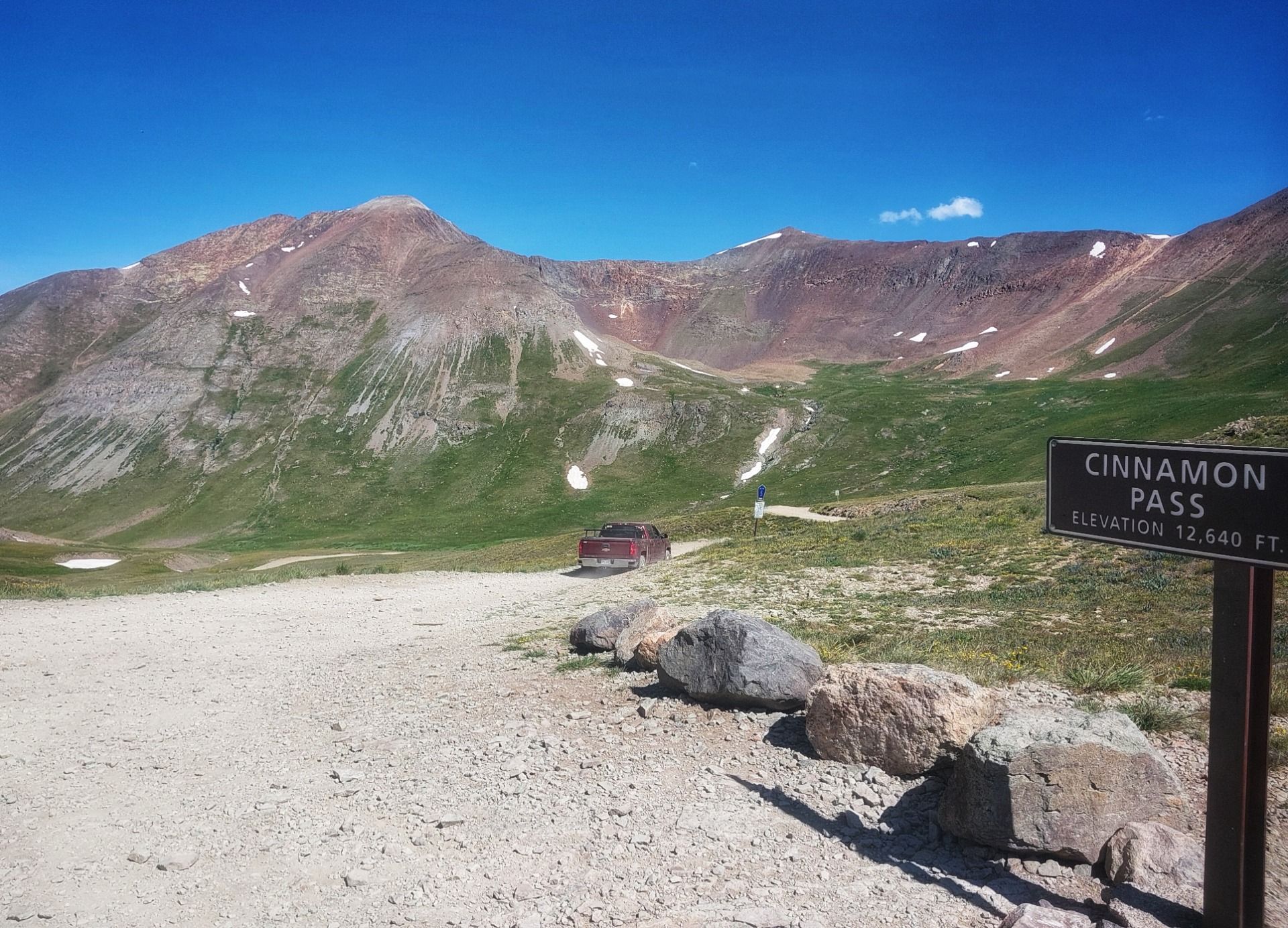 Der Cinnamon Pass liegt auf 3.853 m Höhe in den San Juan Mountains und verbindet Lake City mit Silverton. Von Osten kommend, schlängelt sich der Weg an Fichten vorbei, bald wird es karger, die Baumgrenze bleibt zurück, und die Landschaft verwandelt sich in ein Hochgebirgstheater: grüne Matten, graue Geröllfelder, bunte Blumen, schroffe Gipfel.