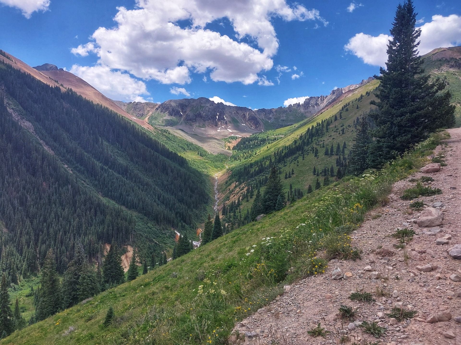 Hurricane Pass (3.901 m): Ein schmaler, steiniger Trail, der sich in endlosen Serpentinen den Hang hochzieht. Die Aussicht reicht zurück auf Animas Forks und die umliegenden Gipfel, die wie gezackte Messer den Himmel durchschneiden.