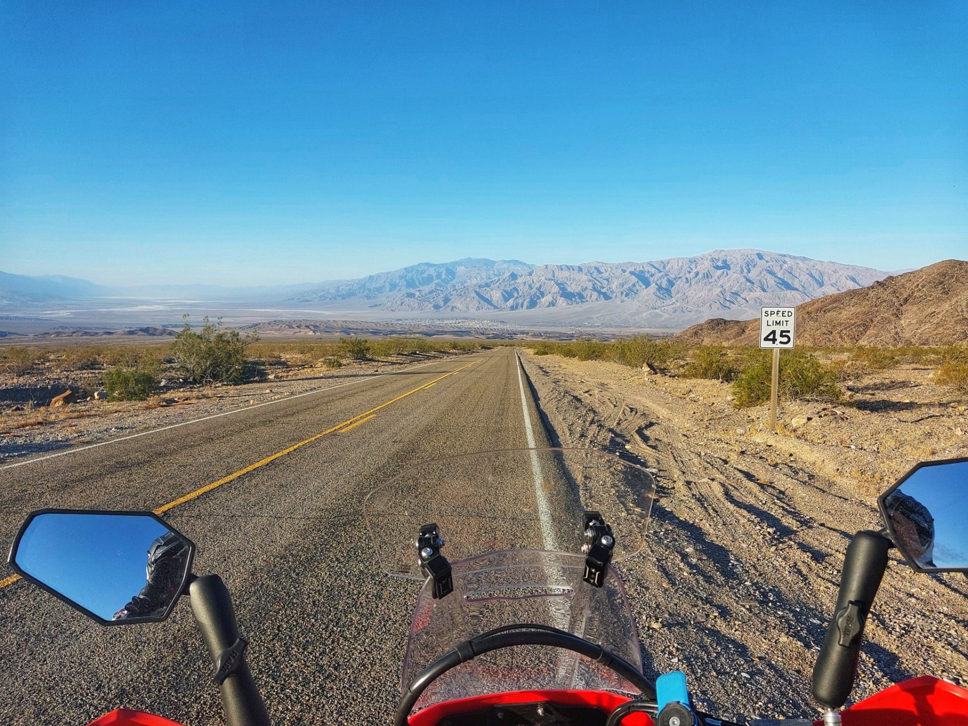 Wurde es auch – aber erst nachdem ich schon lange weiter nördlich war. Die höchste Tagestemperatur gestern: knackige 47 Grad Celsius. Zum Glück musste ich das nicht miterleben. Kein Wunder, dass hier einst die heißeste Lufttemperatur der Erde gemessen wurde: 56,7 °C im Juli 1913. Aber: Die Weite, die Farben, diese irre Tiefe – all das ist faszinierend. Es ist, als würde man durch ein Naturwunder fahren, das gleichzeitig testet, wie viele Liter Wasser man in sich hineinschütten kann, bevor man zum fahrenden Schwimmbecken wird.