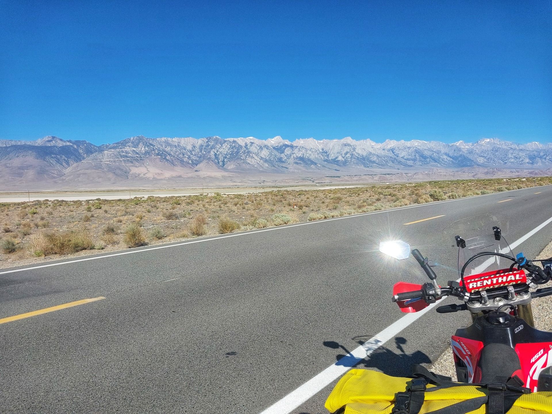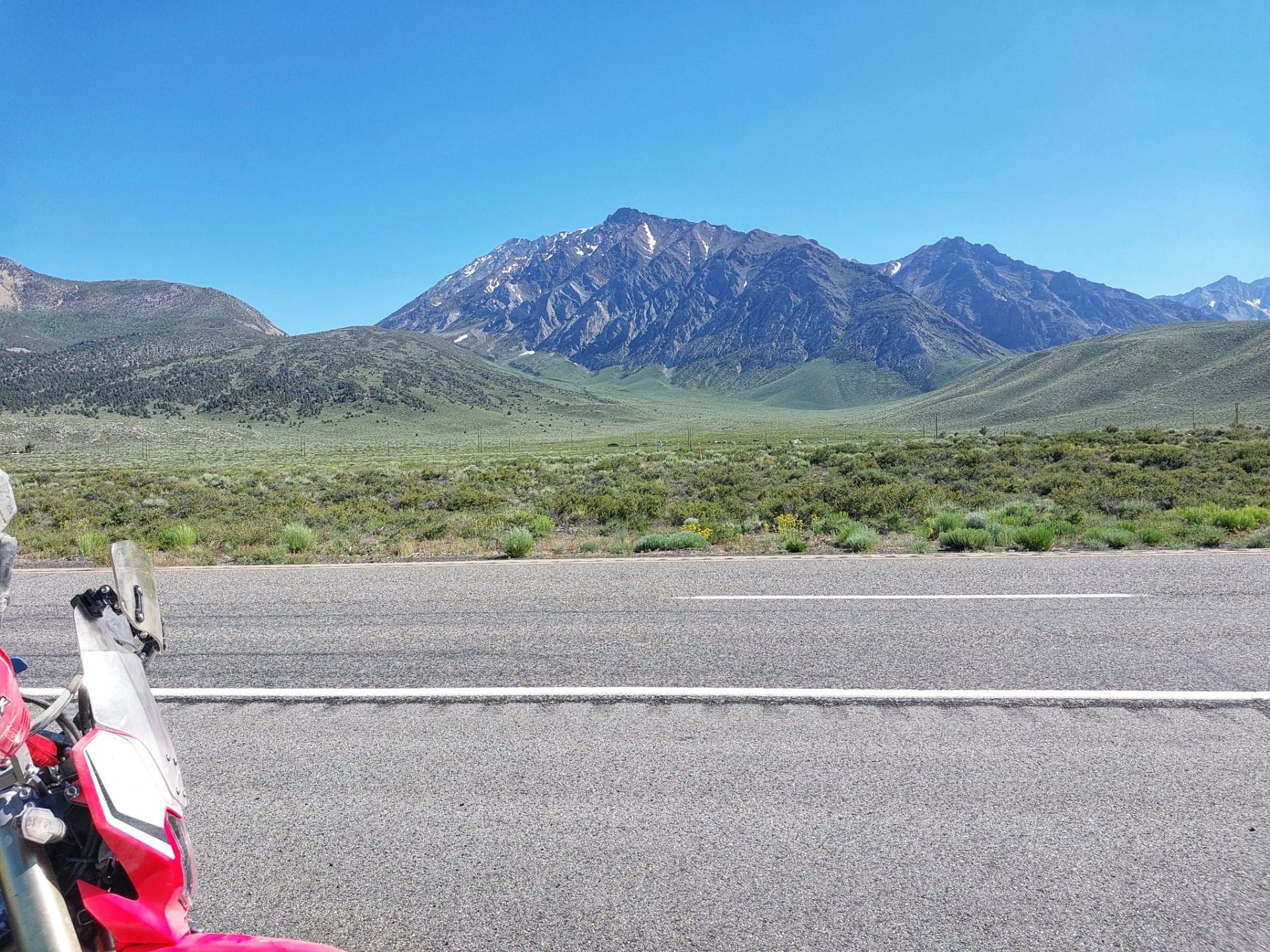 Ich entschließe mich, den nächsten Offroad-Abschnitt zu überspringen und erstmal durchzuatmen. In der nächsten Stadt richte ich mein Bike notdürftig, biege den Handschützer wieder zurecht und fahre weiter Richtung Mammoth Lakes.