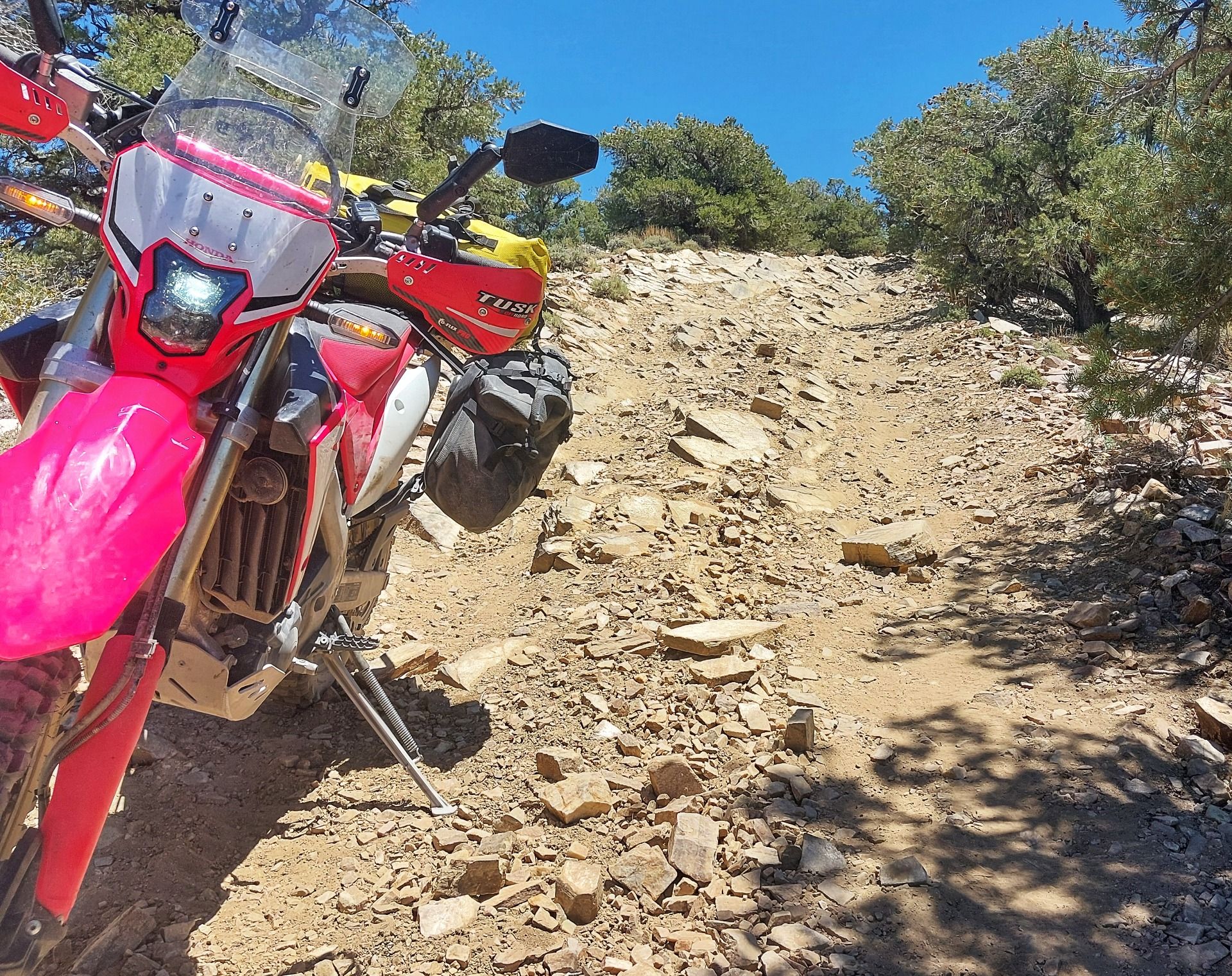 Zuerst läuft alles wie geschmiert – ein bisschen Geröll, ein paar steile Kurven, ich bin im Flow. Doch dann wird der Weg ruppiger, steiniger, schweißtreibender. Mein Motorrad hüpft wie ein junger Ziegenbock über Felsen, ich klammere mich fest und fluche im Takt der Erschütterungen.