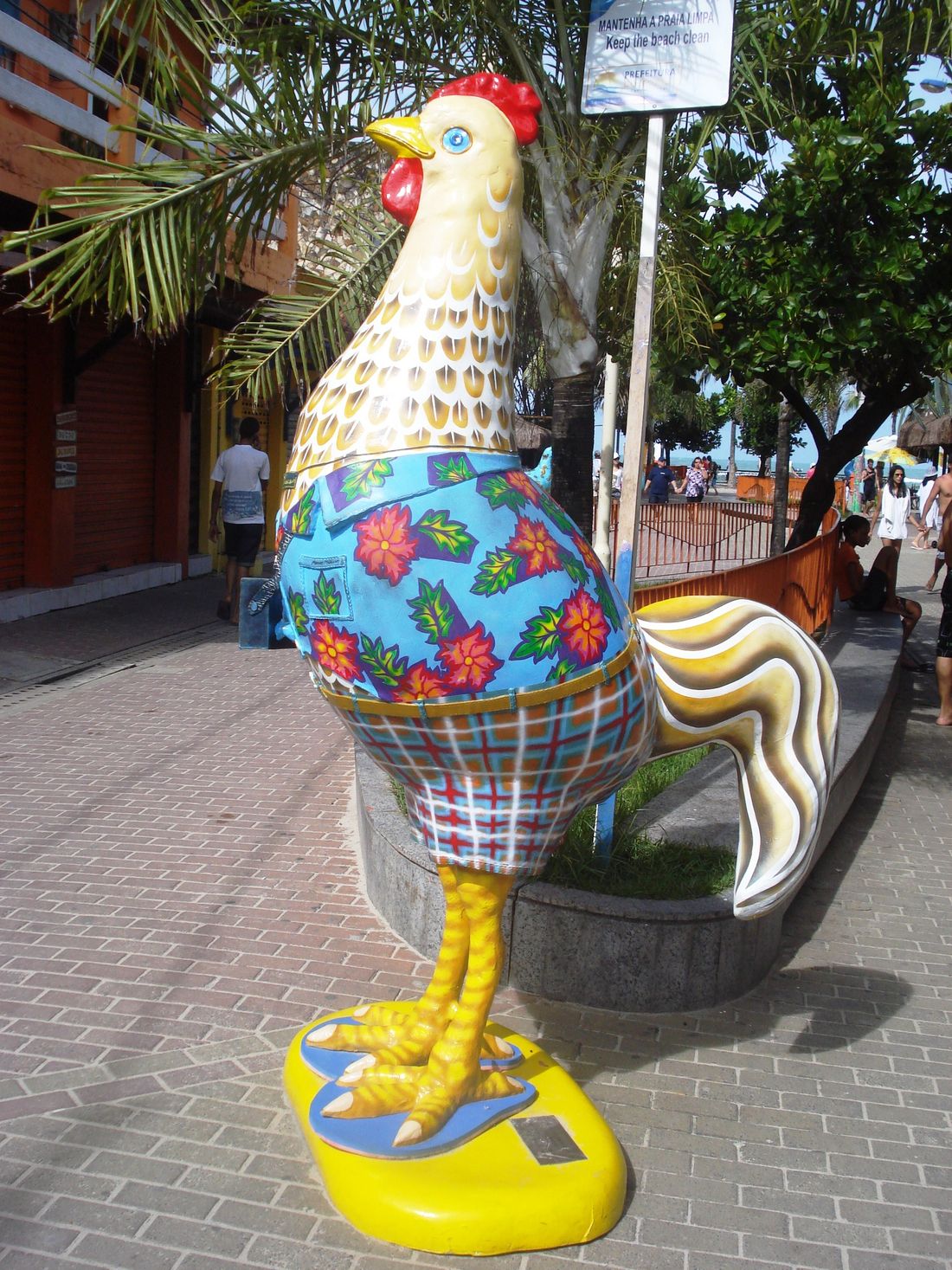 The reason for this particular name has to do with the slave trade that took place in Brazil during the 19th century. When slavery was banned and subsequently abolished, unfortunately ships continued to arrive at this port with slaves hidden in cages where chickens were transported. So this bird is now a kind of icon of the place and is seen in sculptures, showcases and all kinds of souvenirs.