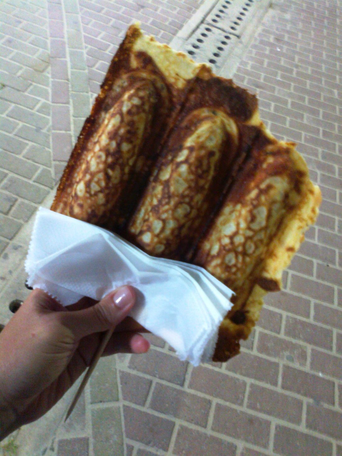 Tapioca (a kind of cassava flour tortilla) and Waffle (or something like that), both stuffed with cheese