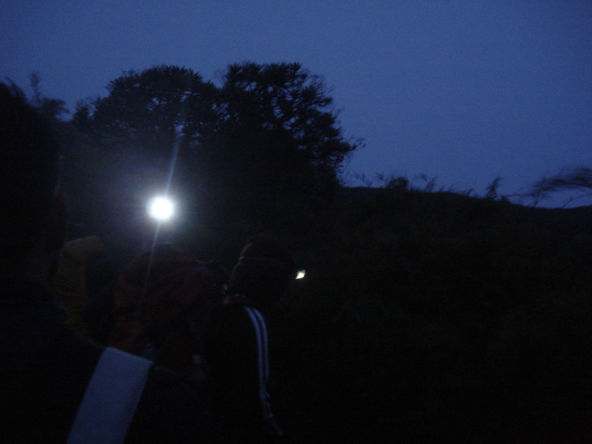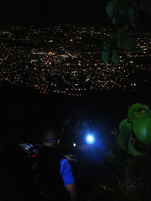 We waited for the rain to stop and after 7:30 pm we started the climb, some with our flashlights on our heads while others carried them in their hands. To avoid stragglers, the guide leading the excursion went ahead and another guide followed the last walker. From time to time the leader yelled at him "last!" and the latter answered “last!”, thus ensuring that the group did not break up too much, taking into account that not everyone could go at the same pace.