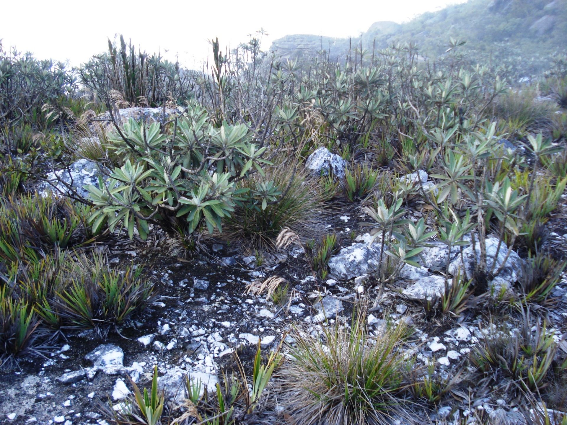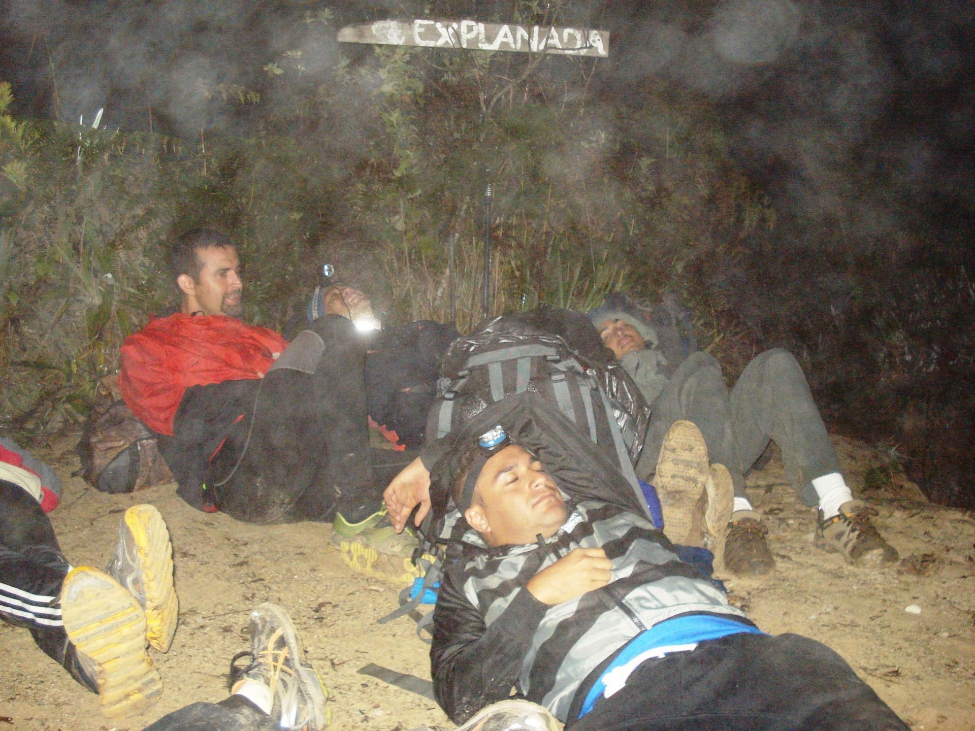 Then comes a flat part, what a relief! It's the Fila Maestra (Master Row), here the vegetation is from subparamo, similar to that of the Venezuelan Andes but without the frailejones (espeletia). When we got there I looked at my watch and it was half past four in the morning, it had been about eight hours since we started the ascent.