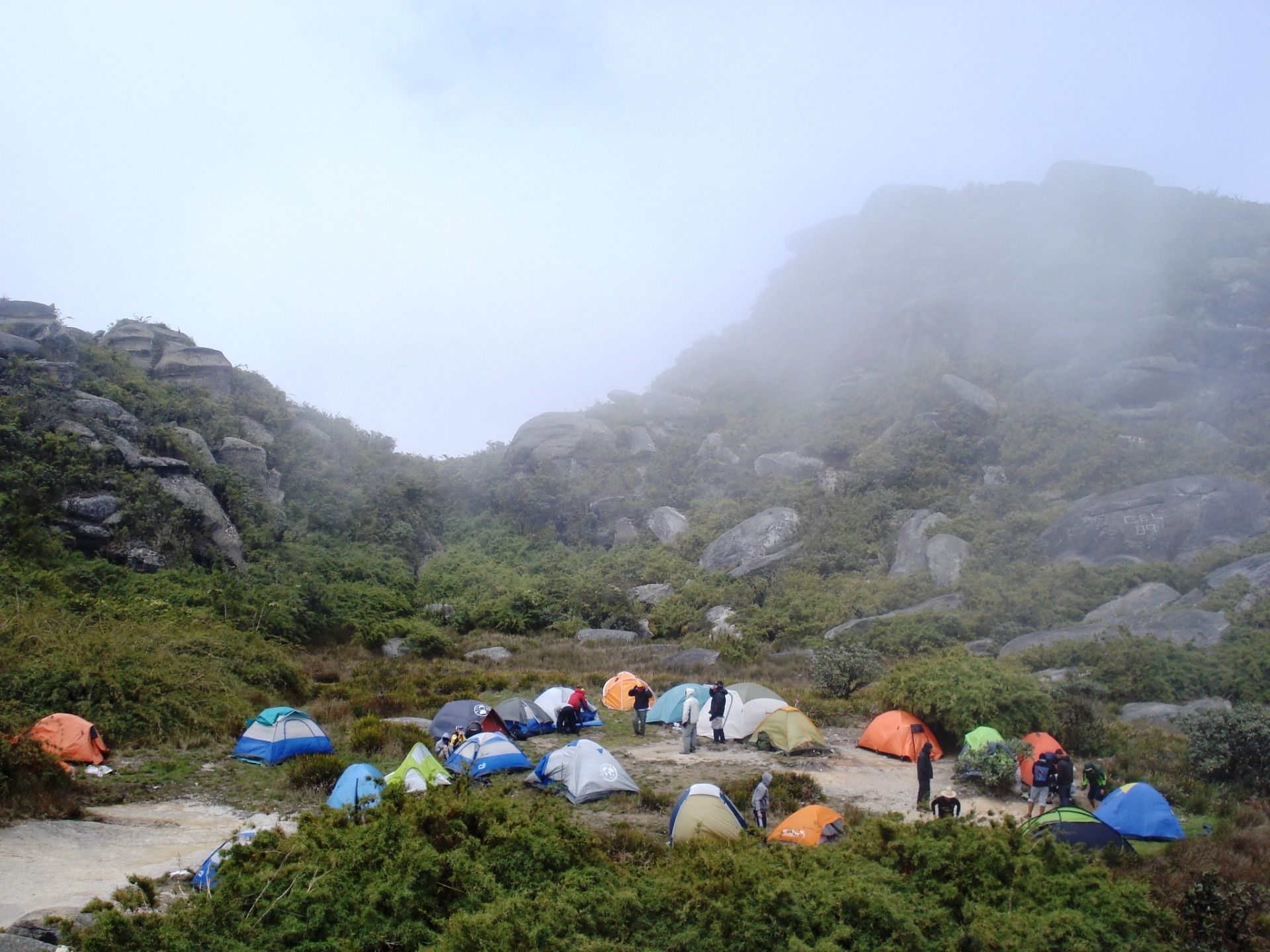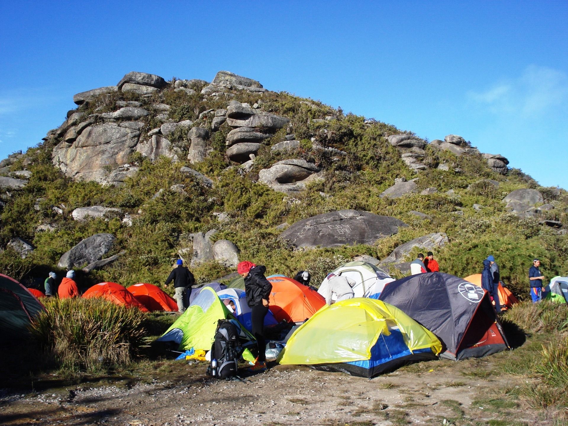 Finally, at about half past five in the morning, with the sky clearing in intense blue tones, we arrived at the so-called Amphitheater, an esplanade where camp is set up, we were already 2700 meters high. There were several people camping there, so we started looking for a place to set up our tents, the best places were taken.
