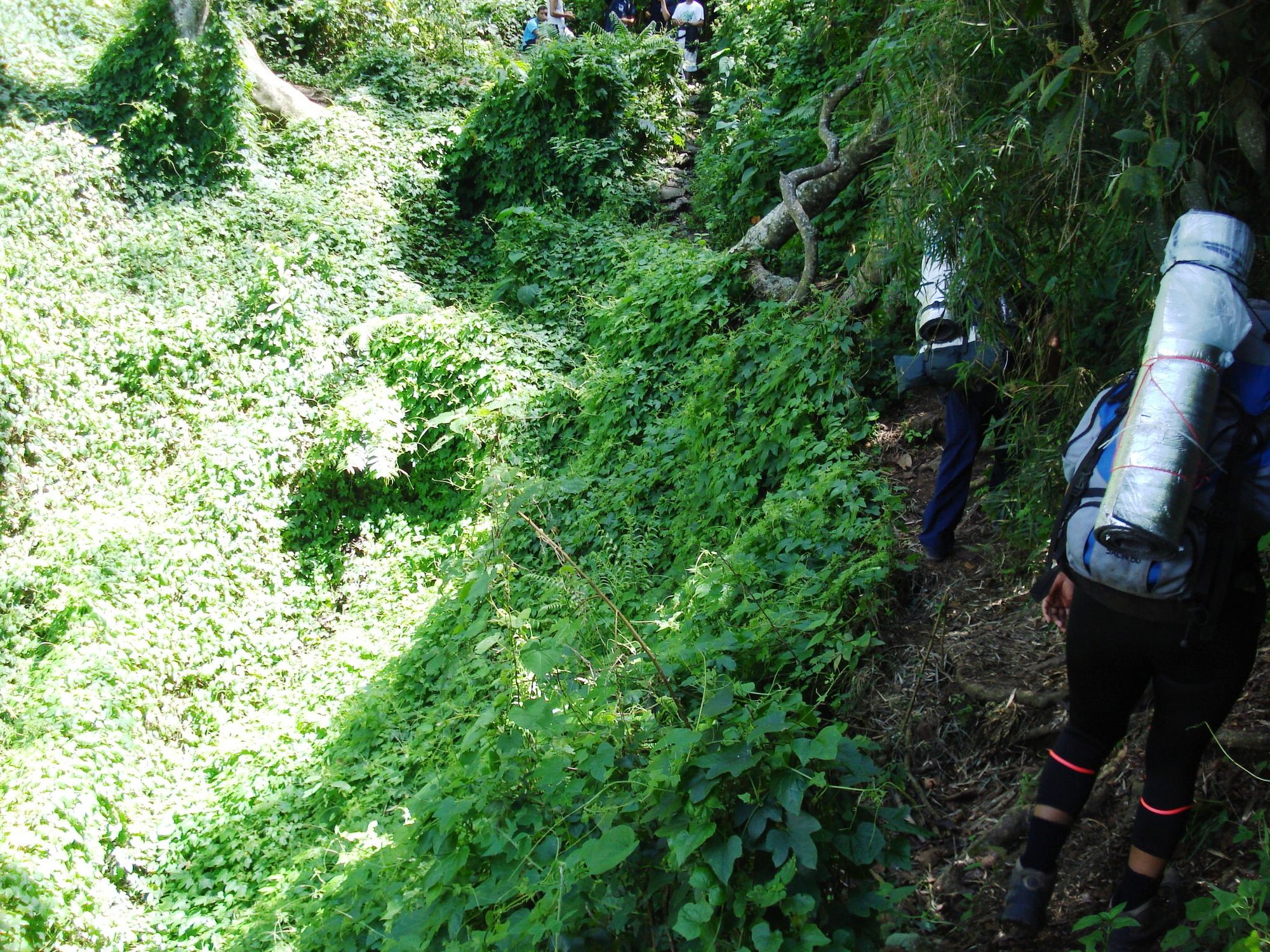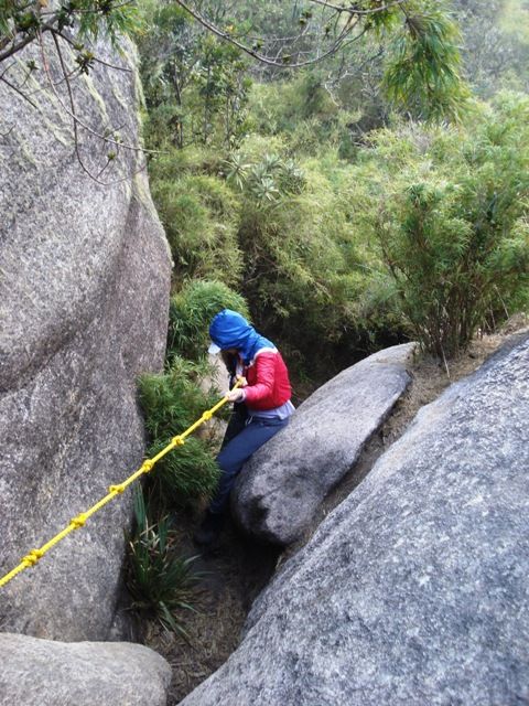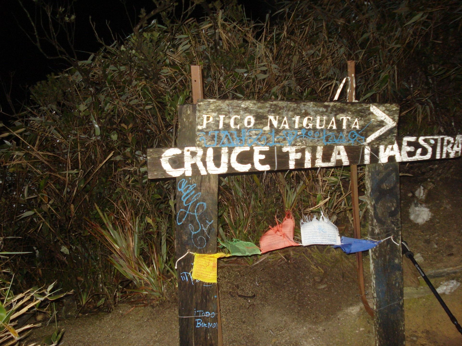 From La Julia we arrive at El Tanque, where you can collect water and continue to another point called Mirador. Meanwhile two boys came down from the mountain and the guide asked them that if the road along Route 77, longer but less steep, was muddy, they said yes and very much, that we better ascend through Dos Banderas, shorter route but with terrifying climbs hahaha ... there I saw the importance of having the flashlight on my head because I used my arms a lot to help me climb several steep steps, almost vertical. For that you had to have your hands free.