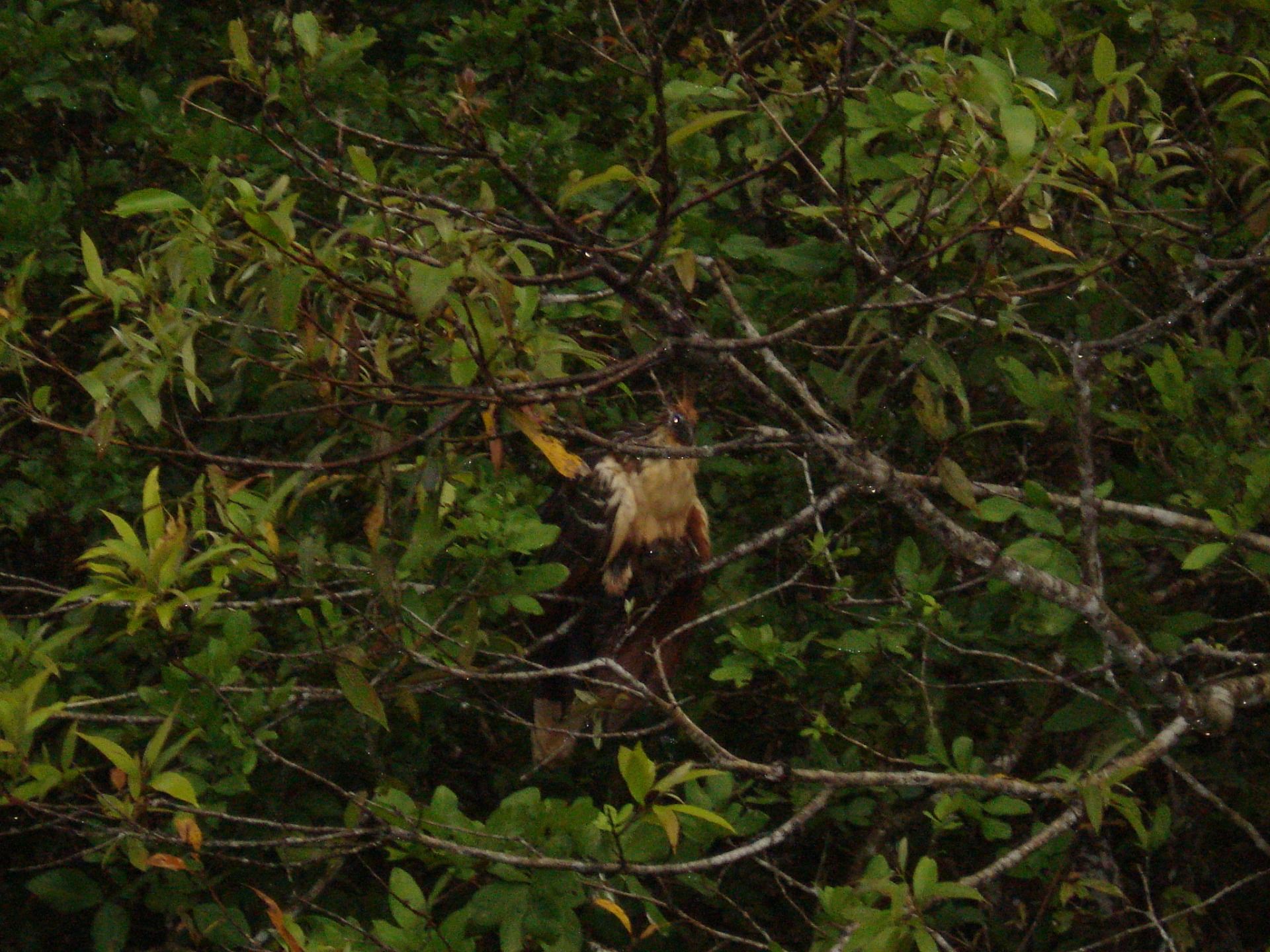 Right there we were lucky enough to see a Hoatzin, a tropical bird that seems prehistoric with its picturesque crest and digestive characteristics like those of cows, that is, bacterial fermentation is present in the front part of its stomach and decomposes the vegetation that eats.