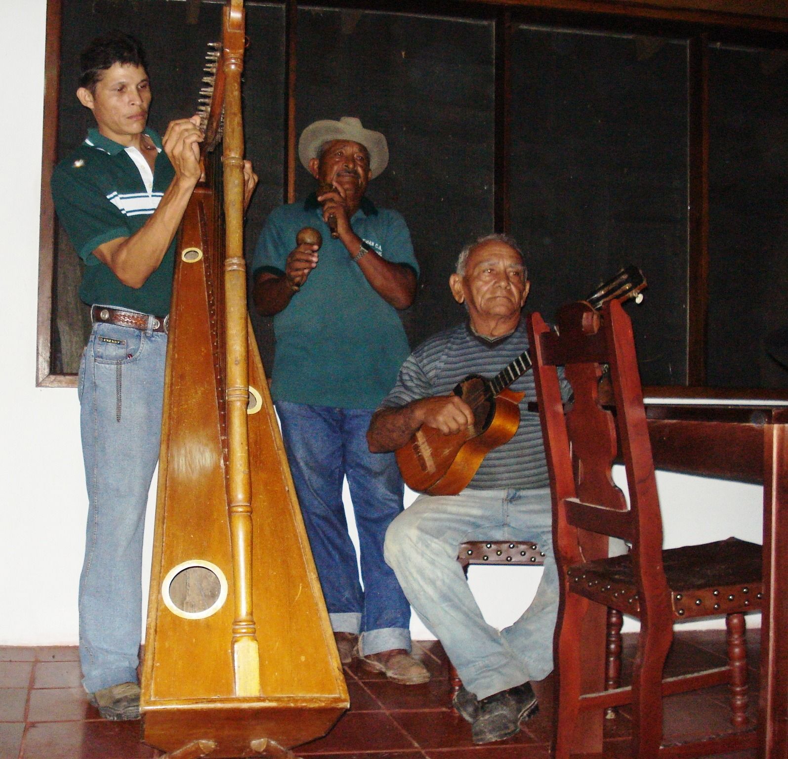 In the camp we took another bath, but in the shower, and then they called us for dinner, when we entered the musicians were already tuning their instruments to offer a concert of creole melodies to the visitors. Harp!