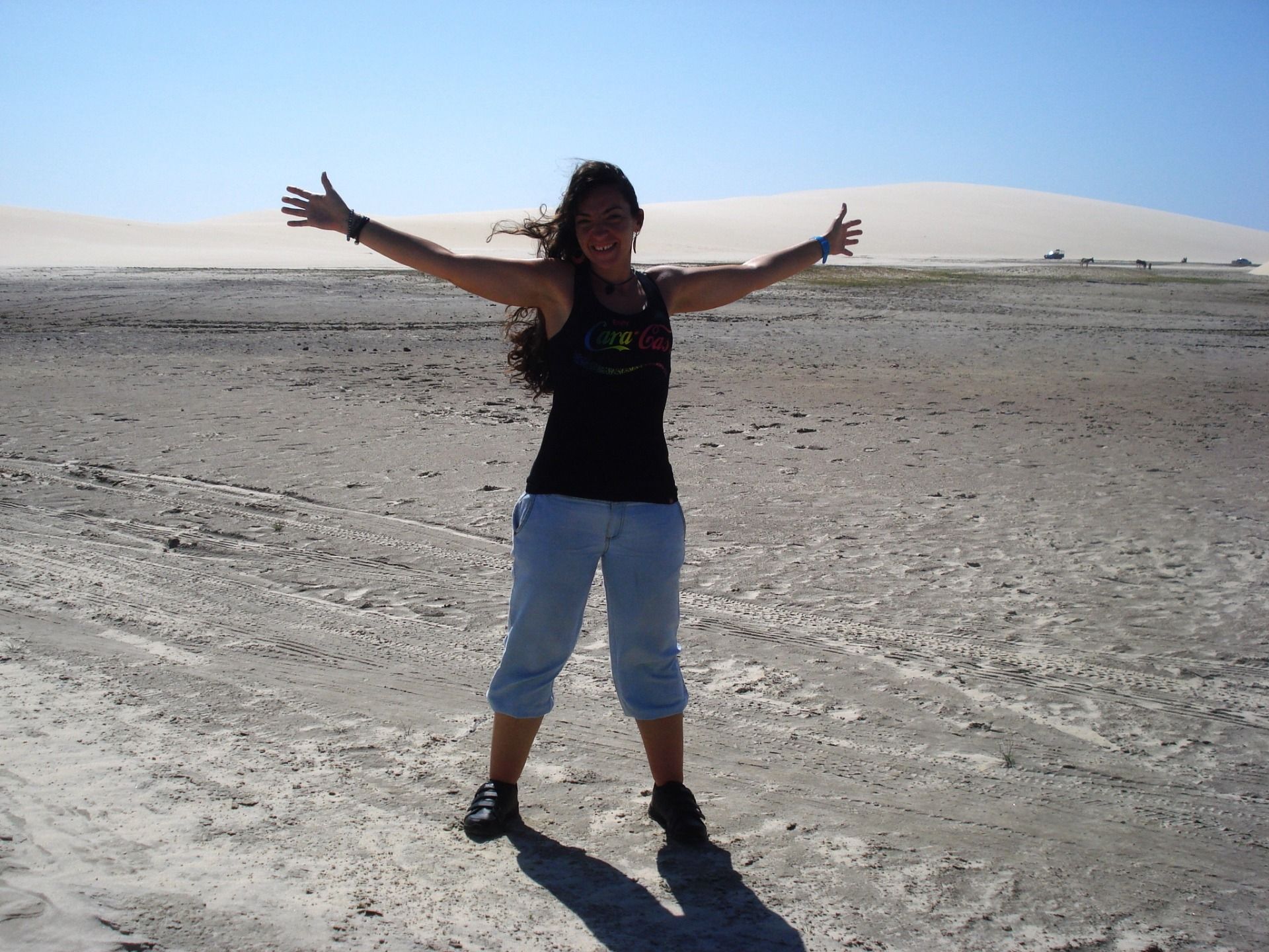 The sandy streets of the town lead you to the huge beach, an impressive coastal landscape. On the one hand the beach, on the other the huge dune “Por do Sol” (Sunset), then some hills with greenery and people bathing, sandboarding or riding horses along the shore. There I stayed for a long time walking and observing, making time to live something very special that characterizes this place: watch the sunset from the dune Por do Sol. It's like a ritual, when the moment approaches a crowd rises to see towards the sea how the sun is hiding in shades of indescribable colors. The silence is broken because many people applaud when this happens, and we all have a smile on our face. When you get down from there, Jeri's night begins to come alive, between music and capoeira.