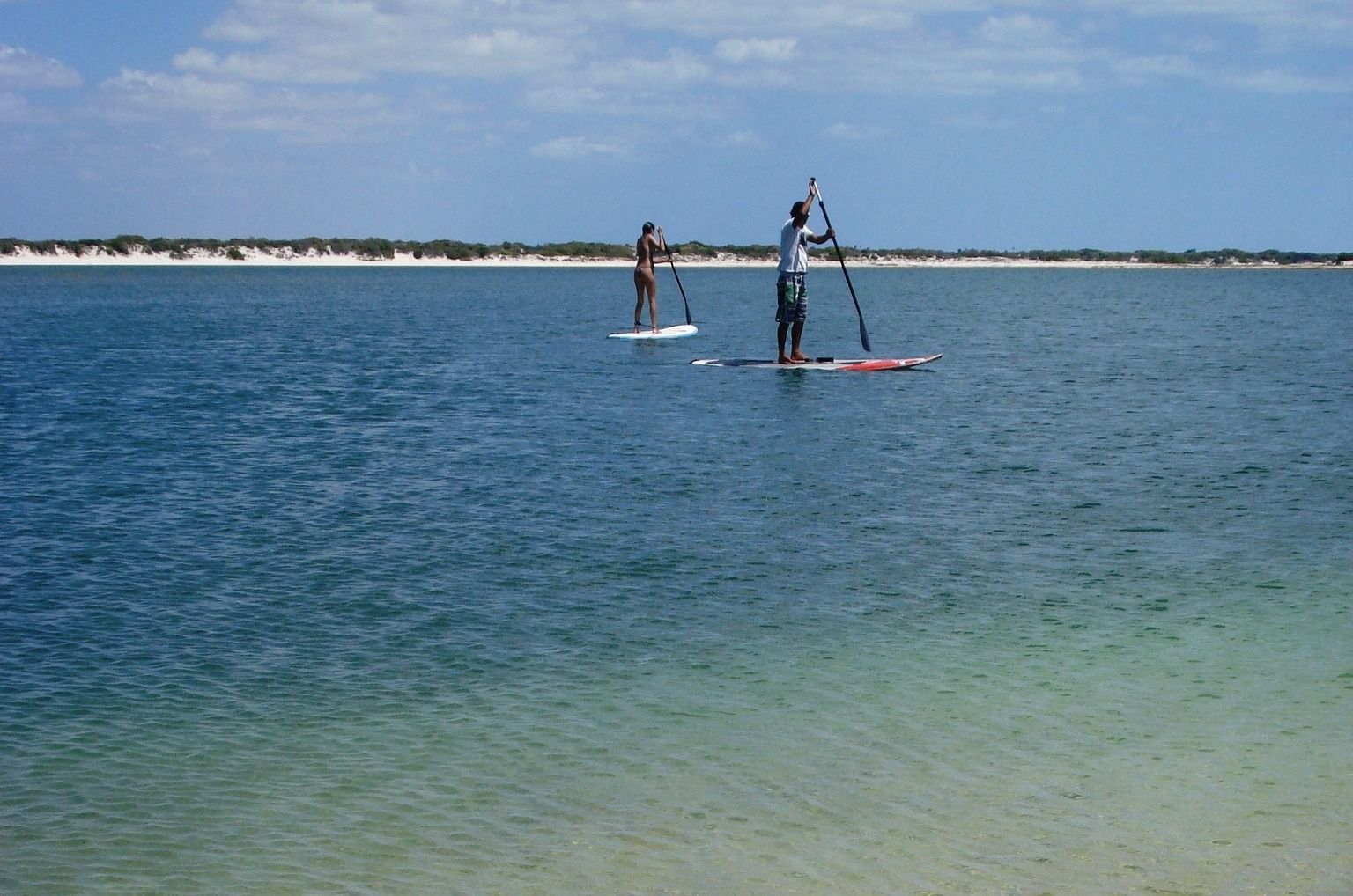 The excursion lasted practically all day, and the idea in addition to bathing in those crystalline waters was also to do activities such as paddle boarding, sailing in jangada and even throwing ourselves from some zip lines to the beach.