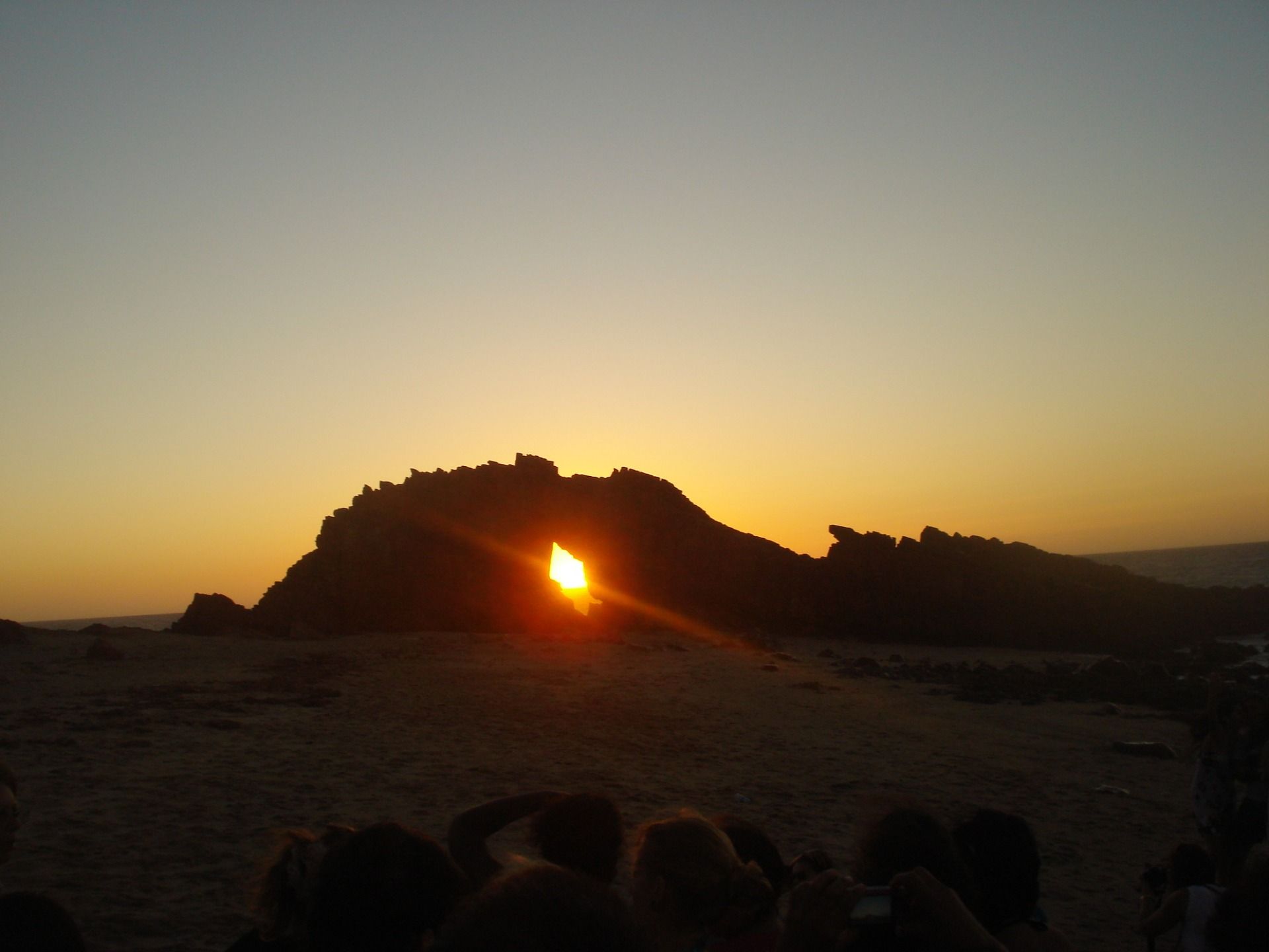 We walked there and when we arrived there were already a lot of "spectators" strategically placed with cameras in hand to immortalize the moment. We also sat there waiting for the sun to fall.