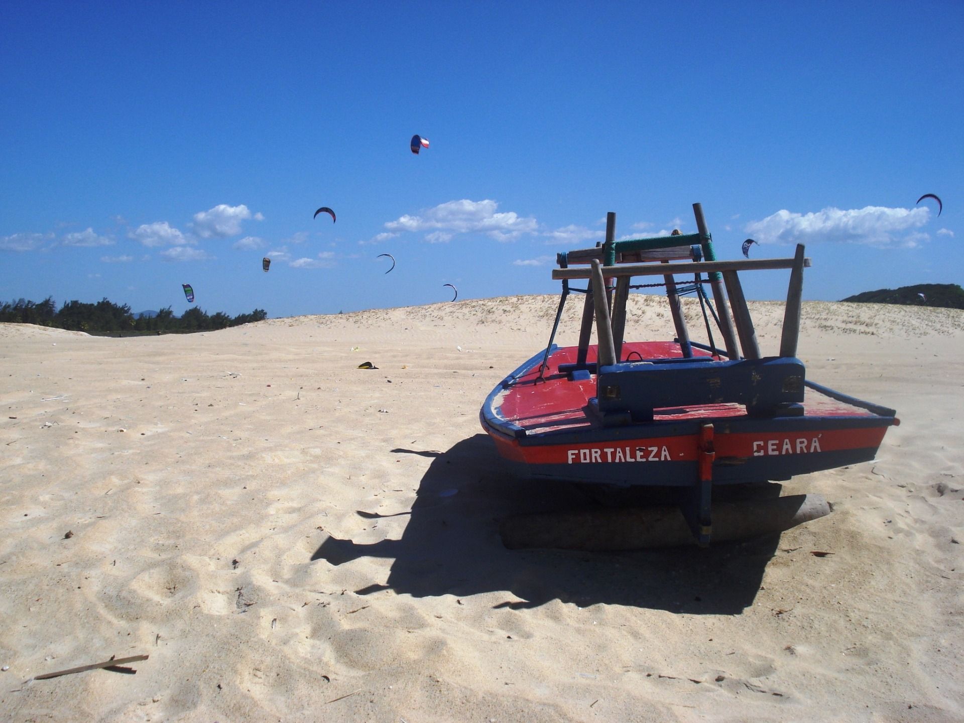 The plan for the next day was to know Cumbuco, a less crowded beach that is about 35 km northwest of Fortaleza, famous for its dunes. I asked at the hostel how to get there and took a bus. I left early to take advantage of the day and see if I was again immersed in Brazilian waters. I was excited because there was bright sunshine.