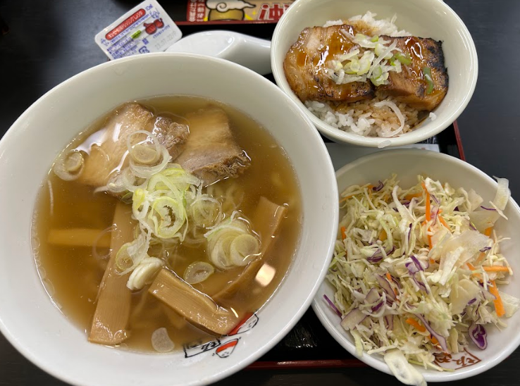 We took a seat to peruse the menu and we would normally order the set that comes with ramen, chashu rice and salad. The marinated and torched chashu is actually super good; even better than the ramen I would say.