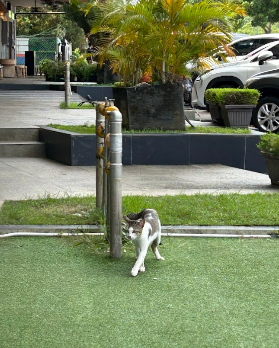 We ordered a car to take us to the next hotel and we saw the same stray cat making his rounds outside the cafe.