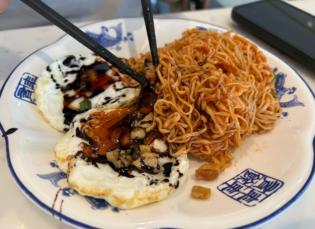 I think Sean ordered the original white wantan mee and also added fried egg and lard bits. The egg had a fluid yolk that mixed well with the sauce and the noodles.