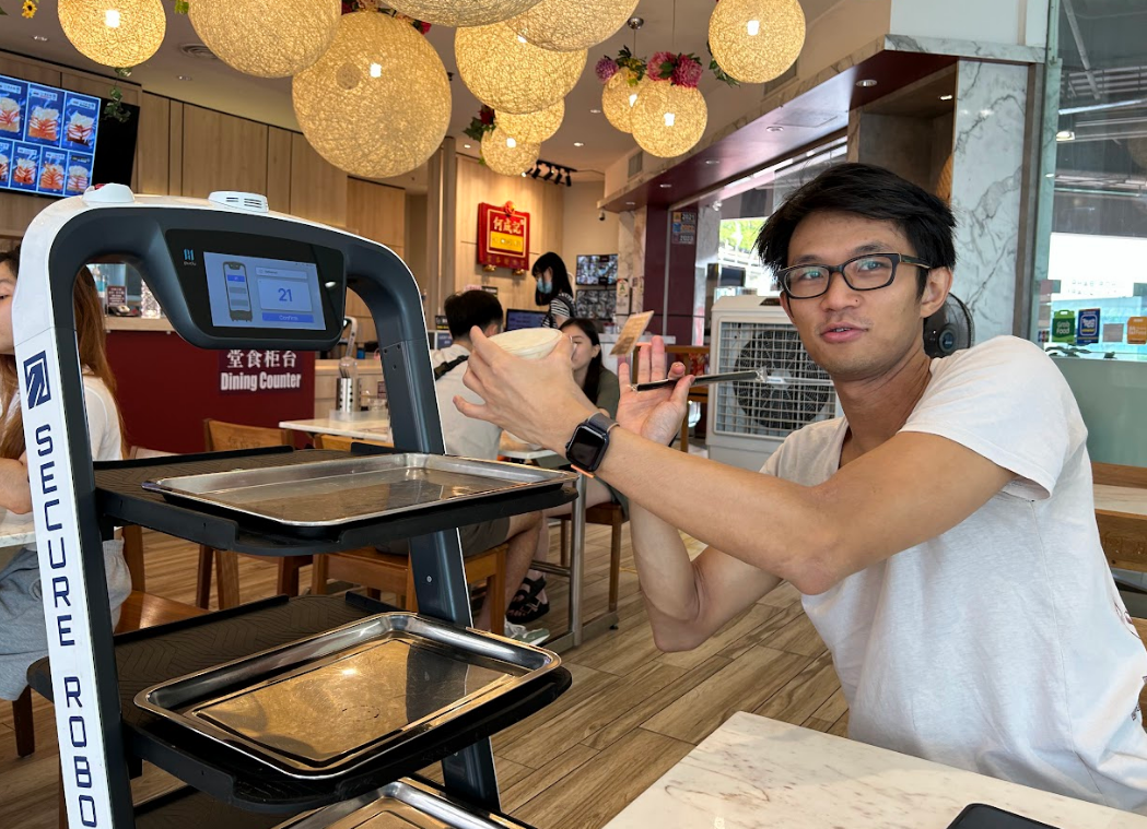 A few minutes after we placed our order, a robot waiter came by to deliver it to us!