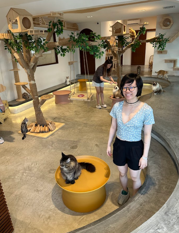 We had such a wonderful time at the cat cafe! Despite a noisy child causing a bit of disruption, the experience was pure joy. Being surrounded by so many adorable cats offered us the perfect dose of furry therapy that we desperately needed.