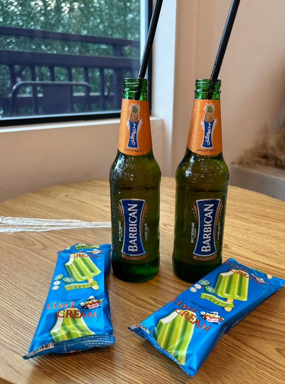We had a lime ice cream and a pineapple soda of sorts. It wasn't too bad.Â