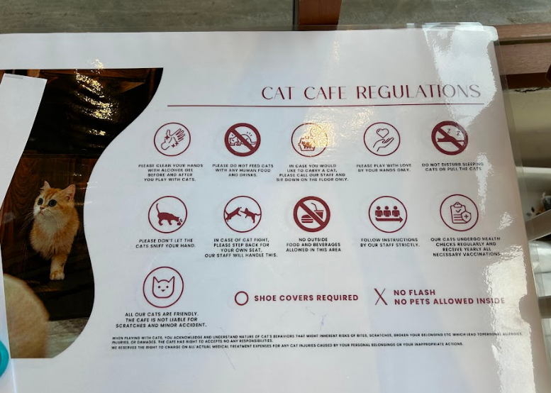 The cat cafe was located on the upper floor so we went there, and the staff member gave us some instructions like putting booties on our shoes and sanitising our hands.