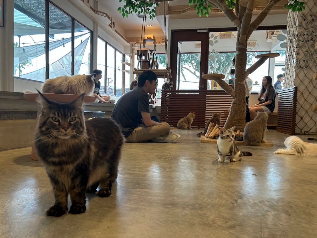 We mostly sat there admiring all the cats since we didn't want to disturb them. There was one Siamese cat that came up to us though! It felt like we were chosen.