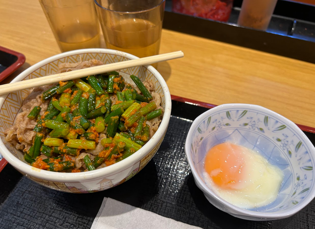 They had a new special gyudon (beef bowl) with spicy garlic sprouts and it looked pretty good!