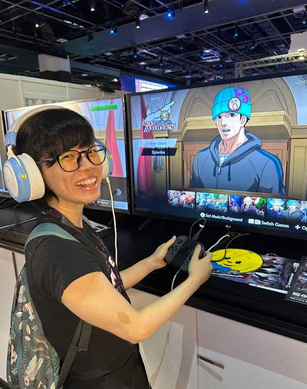 When the queue for the Ace Attorney demo died down, we went in to see if we could try for the demo and managed to get a slot! So I could finally see my hobo husbando in HD for about 15 minutes or so.