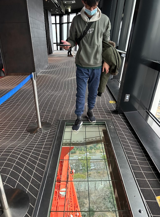 There was a section of the floor that was transparent and you could see all the way to the street floor 250m below. It was quite terrifying to be standing on the glass.Â