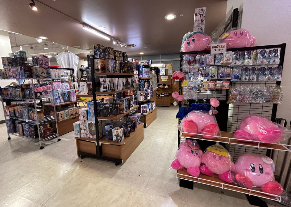 This shop had a lot of figurines for sale and these big Kirby plushies.