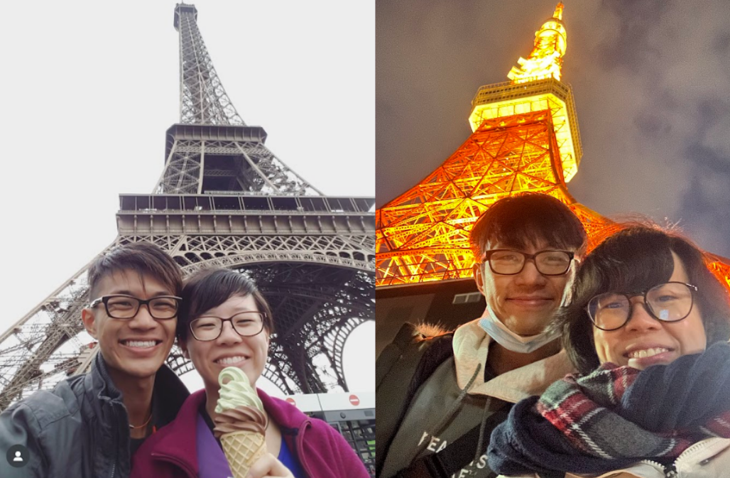 Here's the photo we tried recreate from our trip to Paris. The quality is not as good due to the darkness but we did the best we could.Â