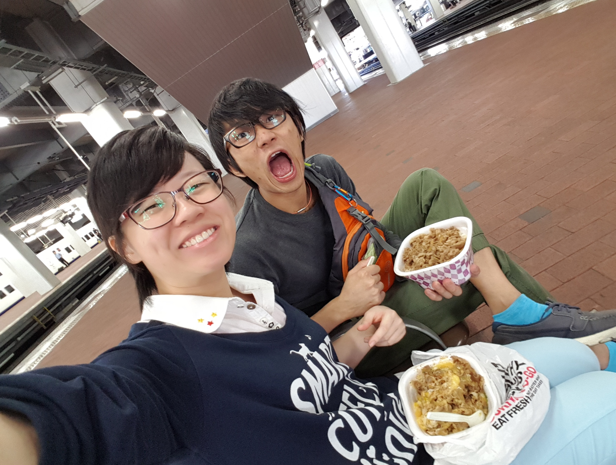 We ate a little bit of our lunch while waiting for the train since we had 15 minutes or so, and the aroma of the gyūdon was too goood to resist any longer!