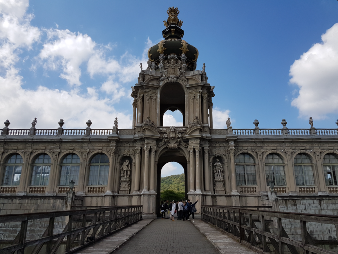 Apparently it's called Zwinger, and is a famous palace in Dresden, Germany! It's also one of the most crucial buildings of the Baroque period in Germany. The original Zwinger was built in 1709 as an orangery and garden as well as a representative festival area. Its richly decorated pavilions and the galleries lined with balustrades, figures and vases testify to the splendor during the reign of Augustus the Strong, Elector of Saxony and elected King of Poland (Cr: Wiki).