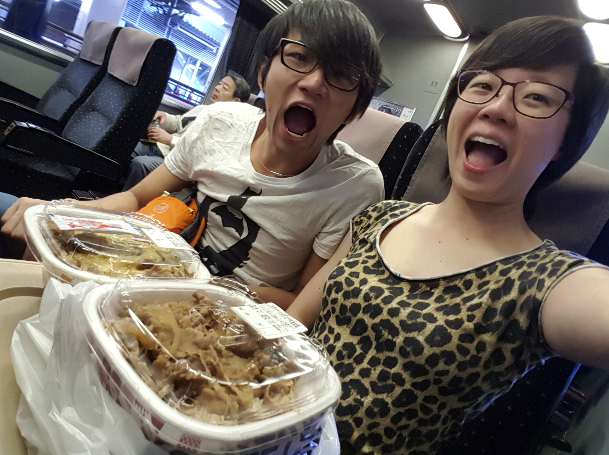 We bought Sukiya gyudons for lunch again and ate it on the train since it was gonna be quite a journey.
