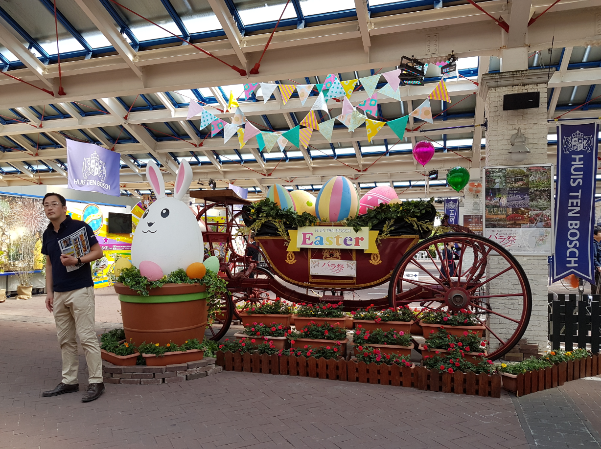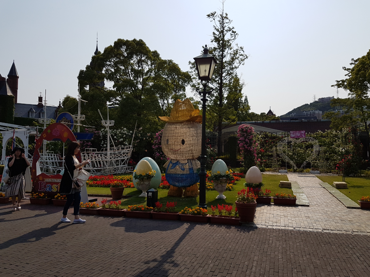 So after we got our tickets (at about 7000yen each btw yeesh), the first thing we saw when we first entered past the gate was this! I guess it was around Easter at the time, and it being modeled after a Dutch town makes for a fitting theme.
