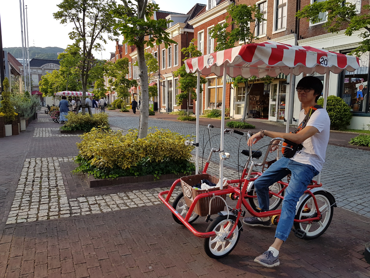 Last week, we continued our day-long journey through Huis Ten Bosch (a Dutch town-inspired theme park) by renting a very unique tandem bike and taking a nice relaxing stroll through the rose garden!