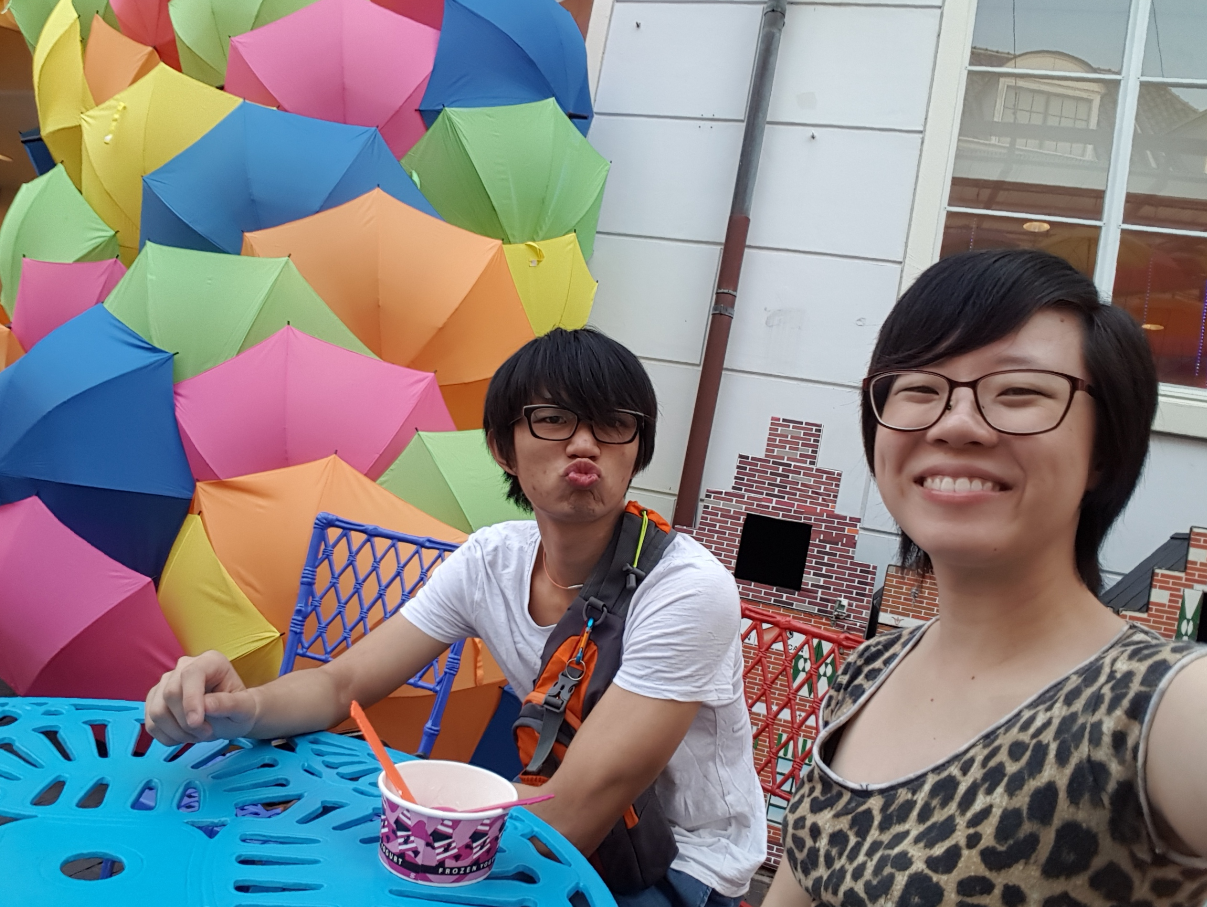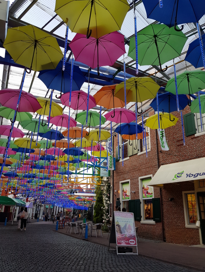 There was some colourful umbrella decorations outside so we decided to take our yogurt outside to enjoy the view!