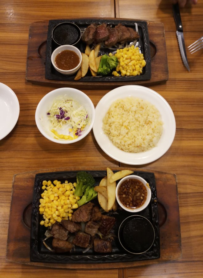 Sean and I were craving steak but I was also kinda hungry so we bought an extra plate of rice to share.