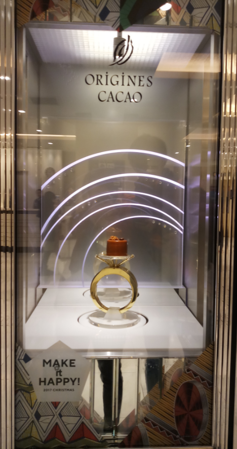 This was a display of a chocolate cake that was on a rotating ring for some reason. I could probably have fit both my arms in that ring.