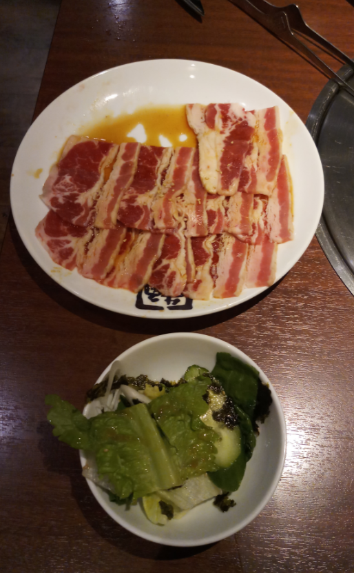 Sean and I got our own table just beside them, and we ordered our own share. They didn't have our favourite 3-in-1 meat set this time, so we decided on our usual karubi and kurobuta.