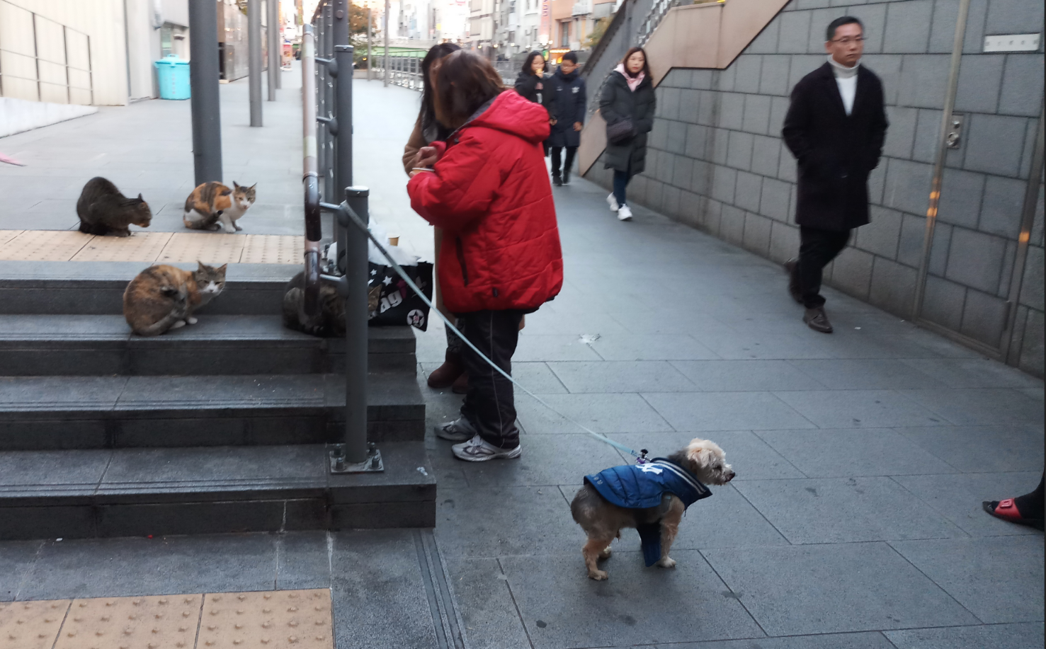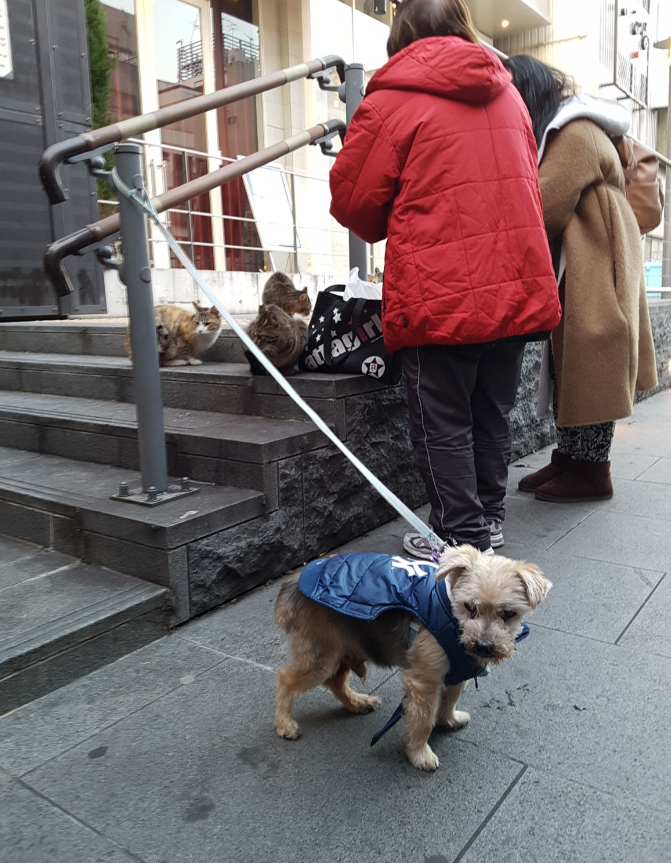 And walking along the canal we saw a clowder of cats! And this lady was feeding them with her dog.